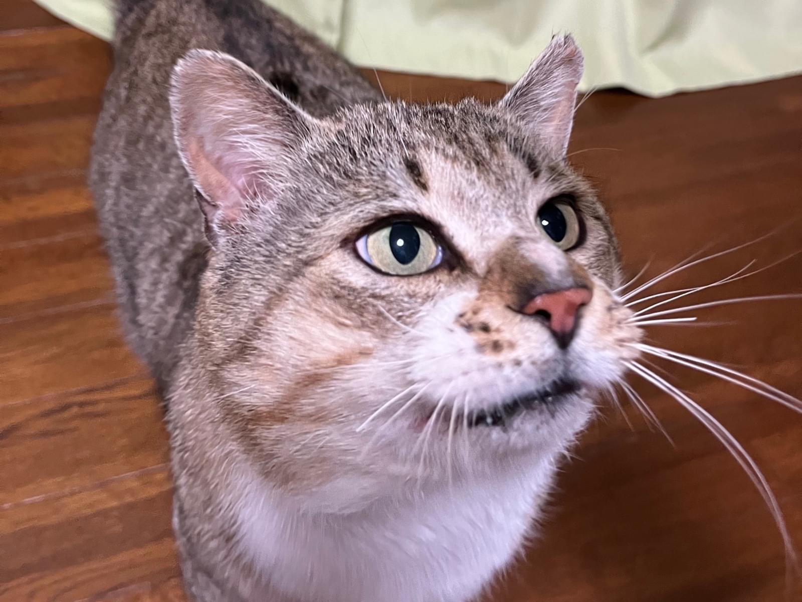 とても人懐っこい、初めましてでも手からおやつを食べてくれて、家の中へ入ってくるような猫ちゃんです。