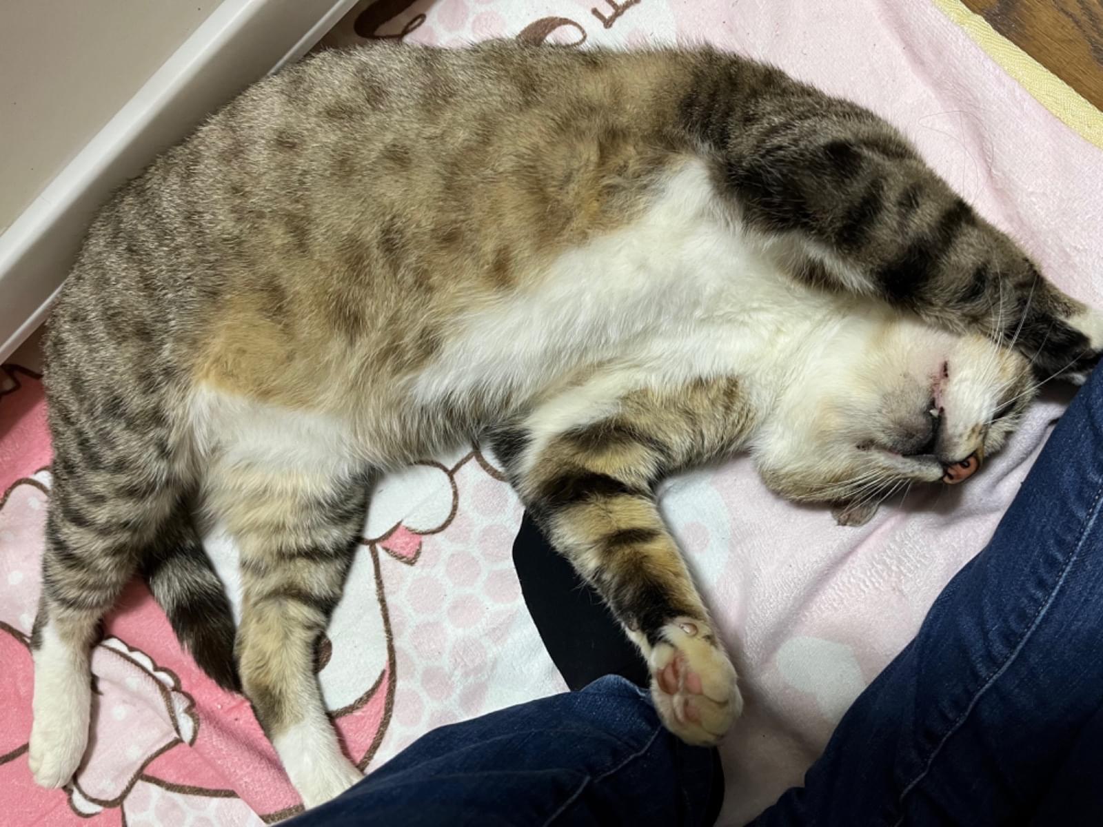 近所の人が飼い始めたのかな?と思っていたのですが、台風の夜の日も外でいた為保護しました。