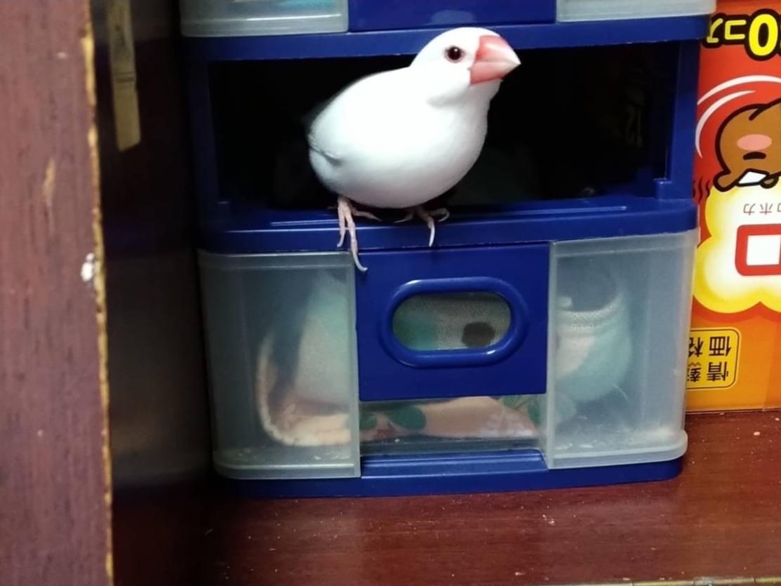 クチバシが赤く体が白い文鳥