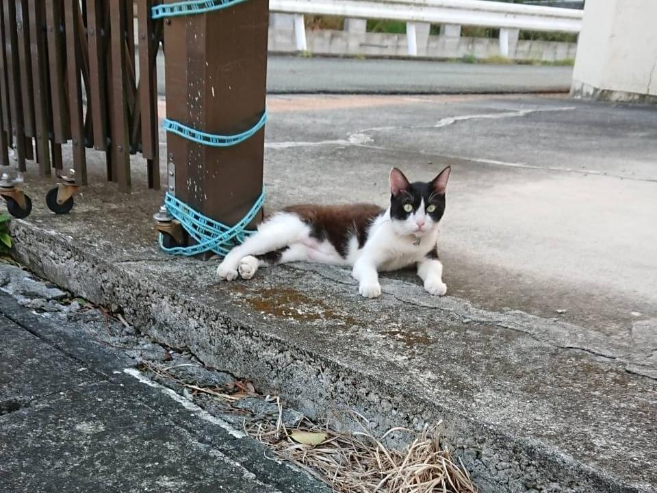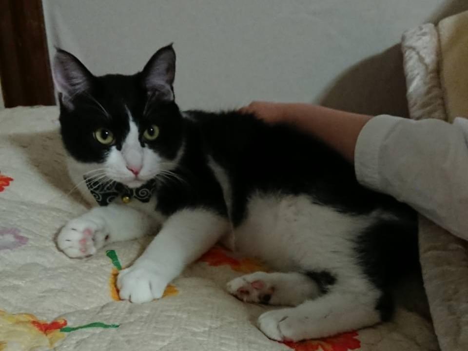 顔が白黒のハチワレで、しっぽは鍵しっぽです!ハート❤️のマークの付いた首輪をしてました!