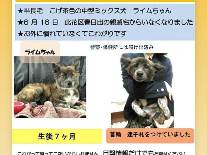 いずれも、ライムちゃんかはわかりませんが、犬が1匹で歩いていたとの事です。