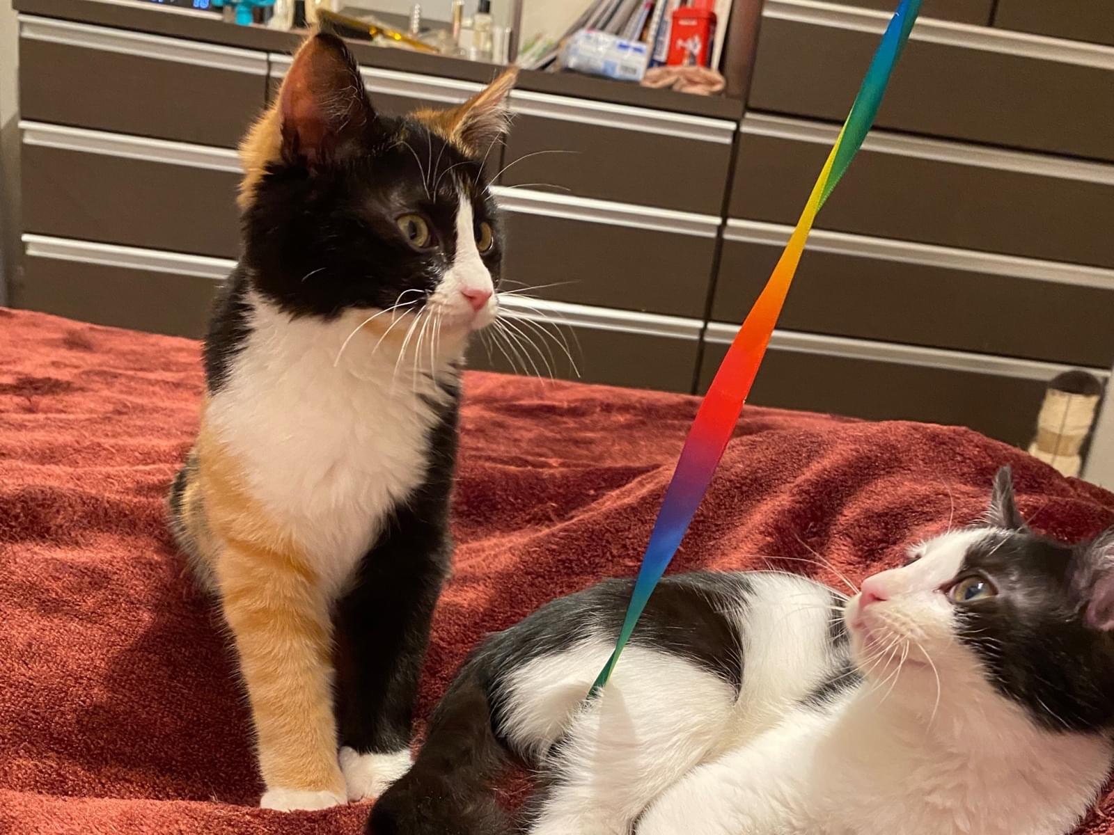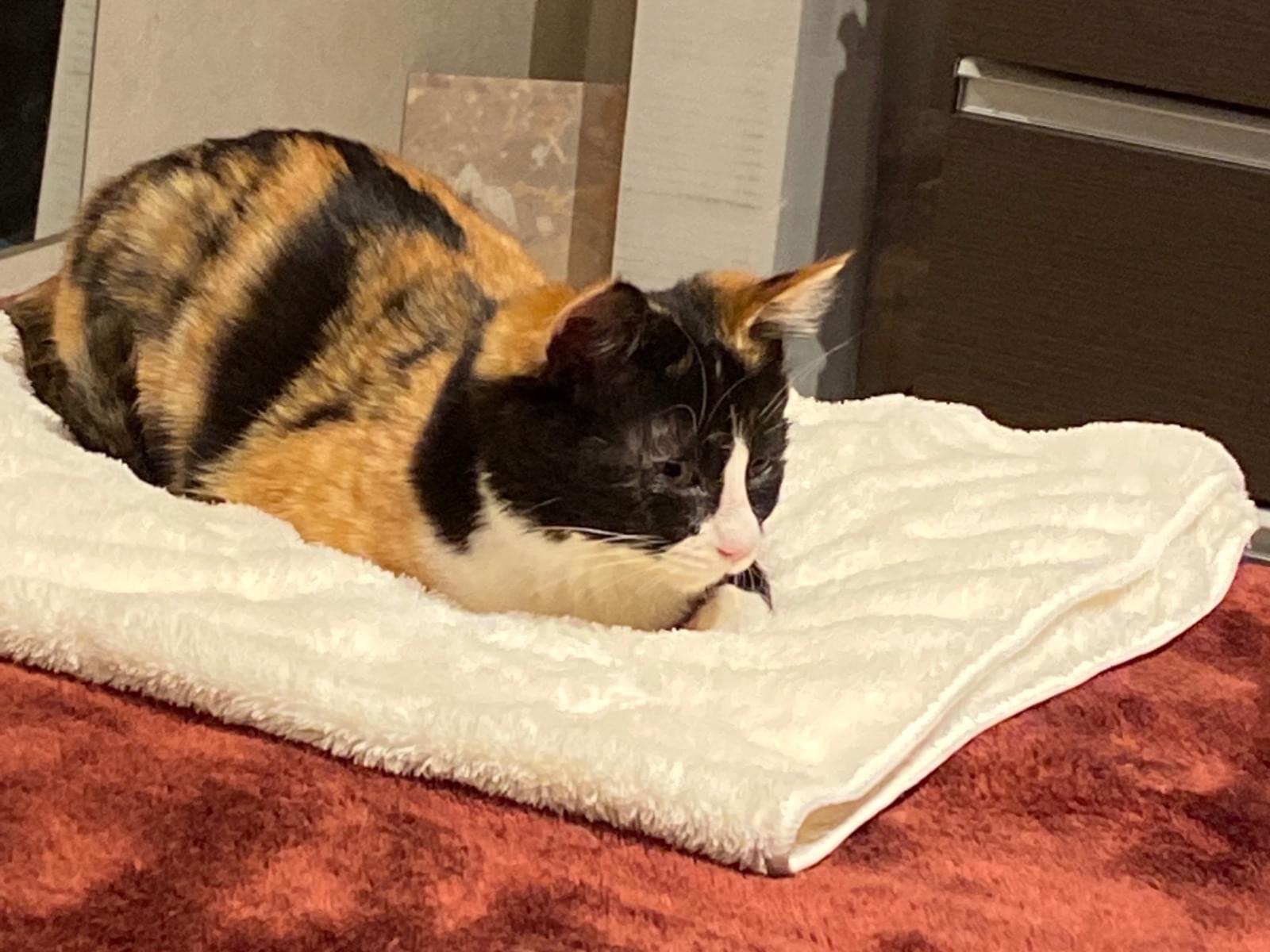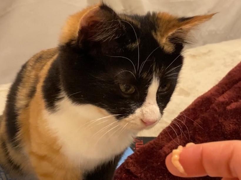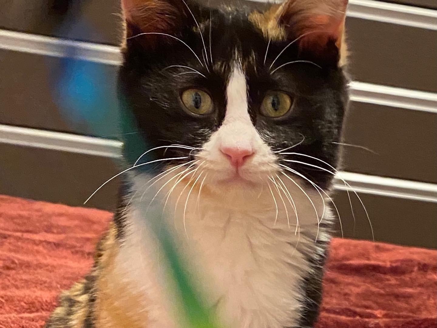 可愛い三毛猫の女の子。保護してから1ヶ月経ちまして、ビビリから甘えん坊になりました。
