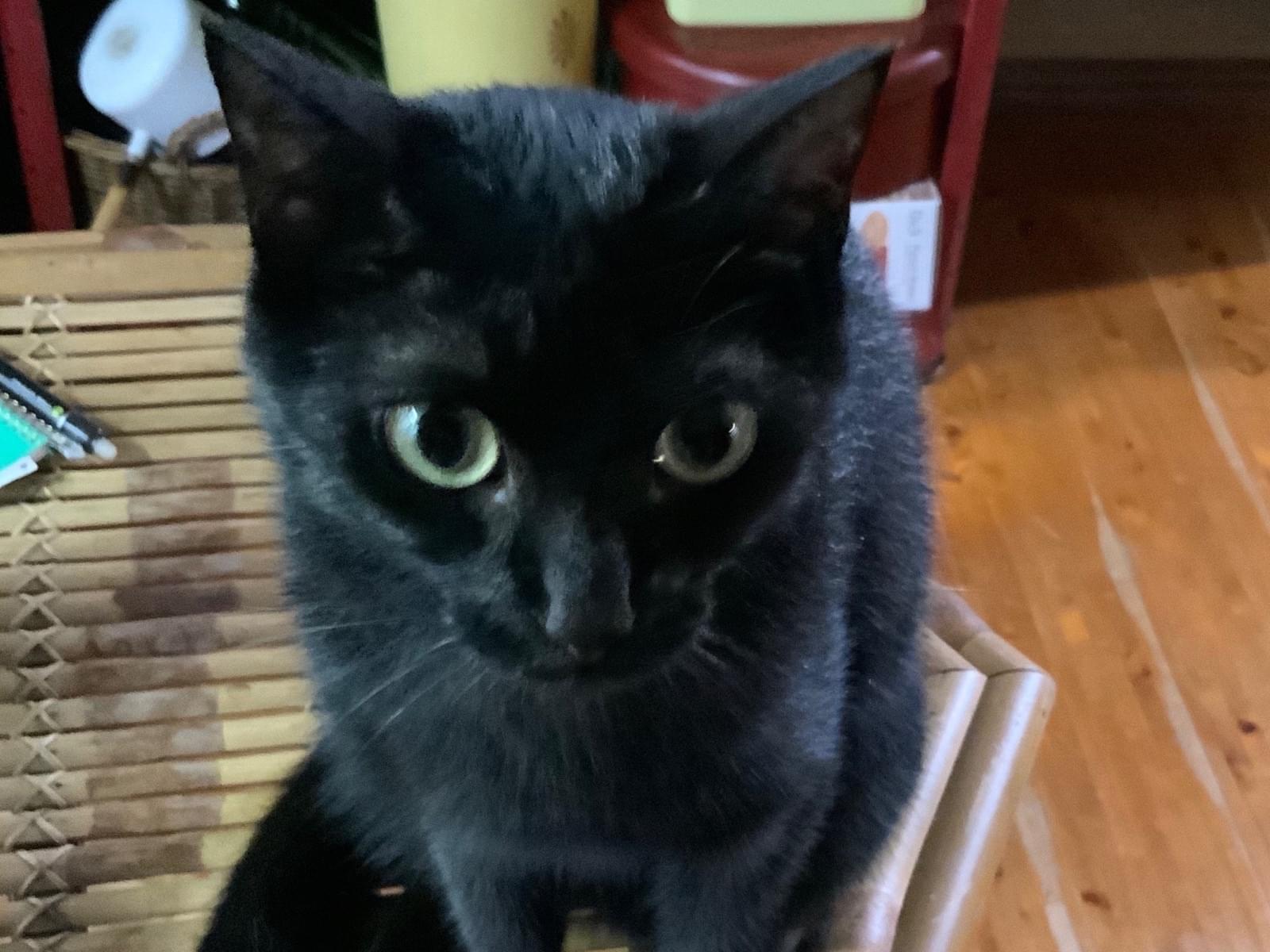 特徴/黒猫、しっぽが長い、細身(行方不明時3.7㎏)、目の上の毛が薄い、目が大きい、首輪なし、避妊済(耳カットはないです)