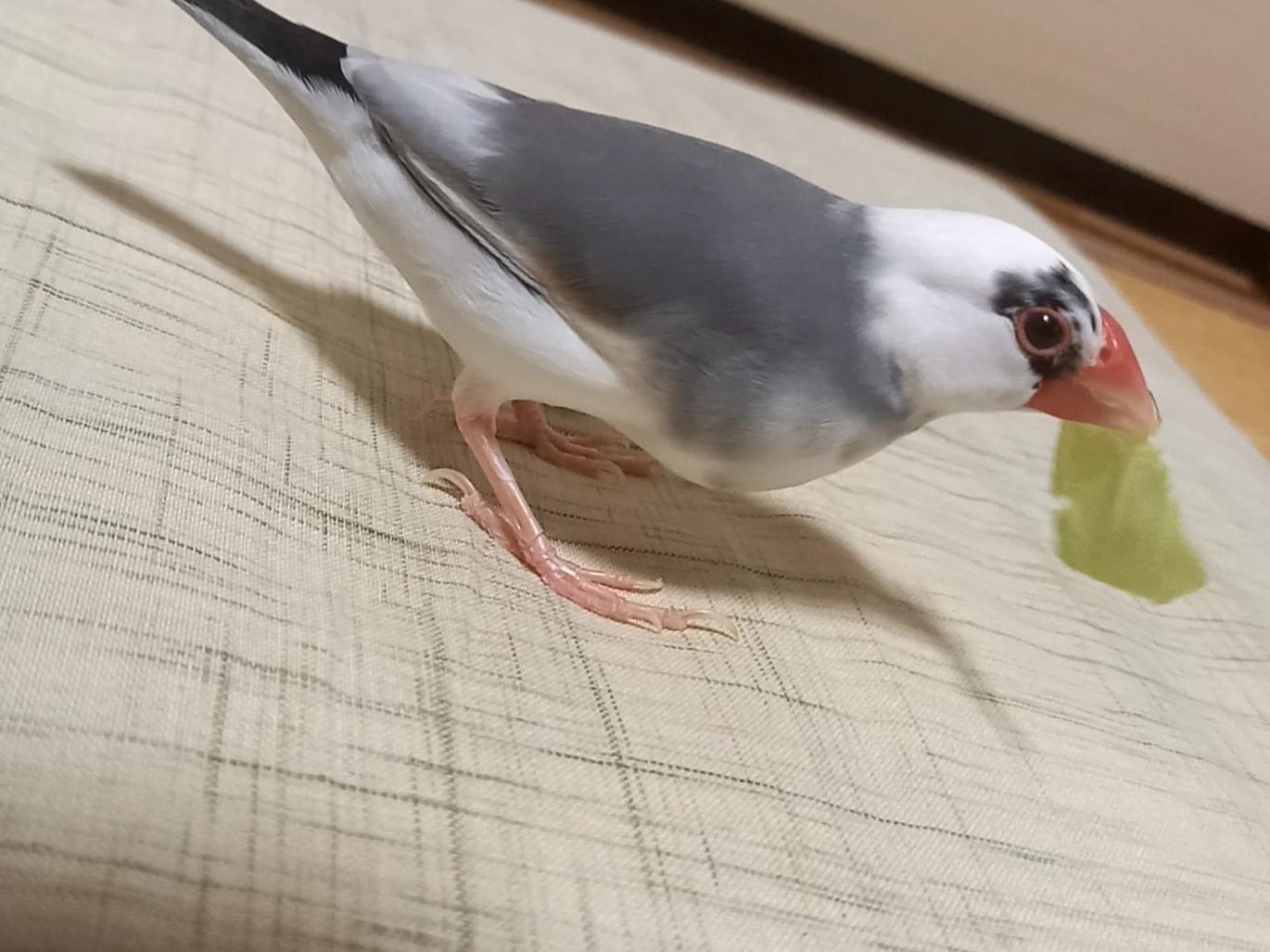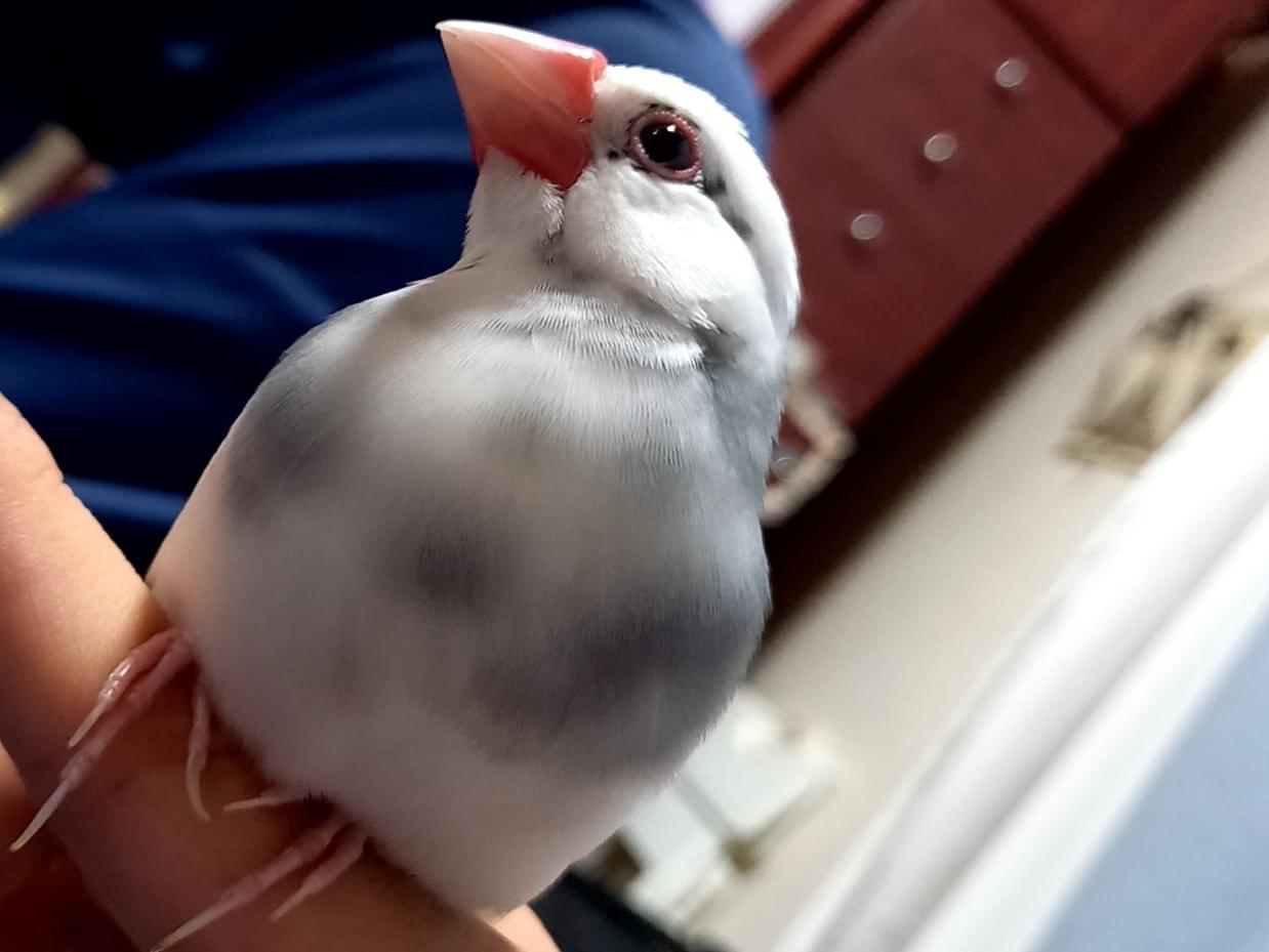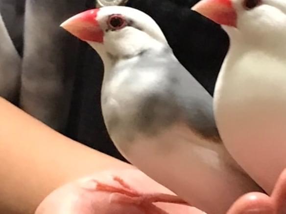 杉並木の近くです。顔は全体的に白で目の付近はグレーです。