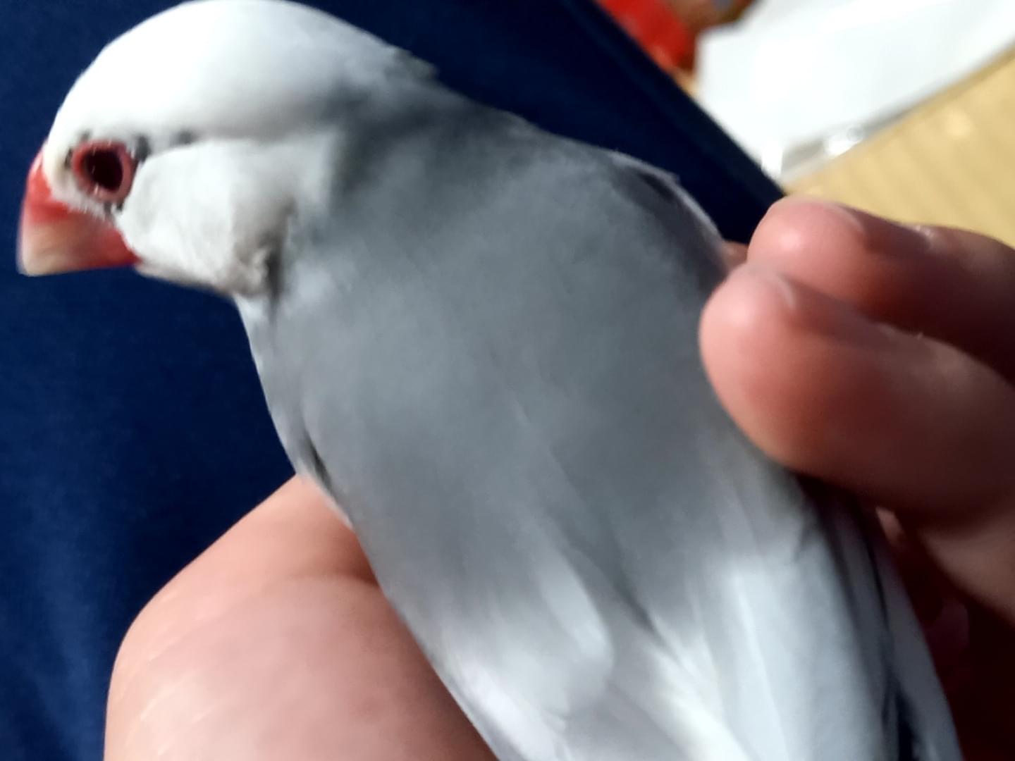 背中はグレーです。胸からお腹にかけてベースは白で薄いグレーの模様が何ヶ所かにあります。