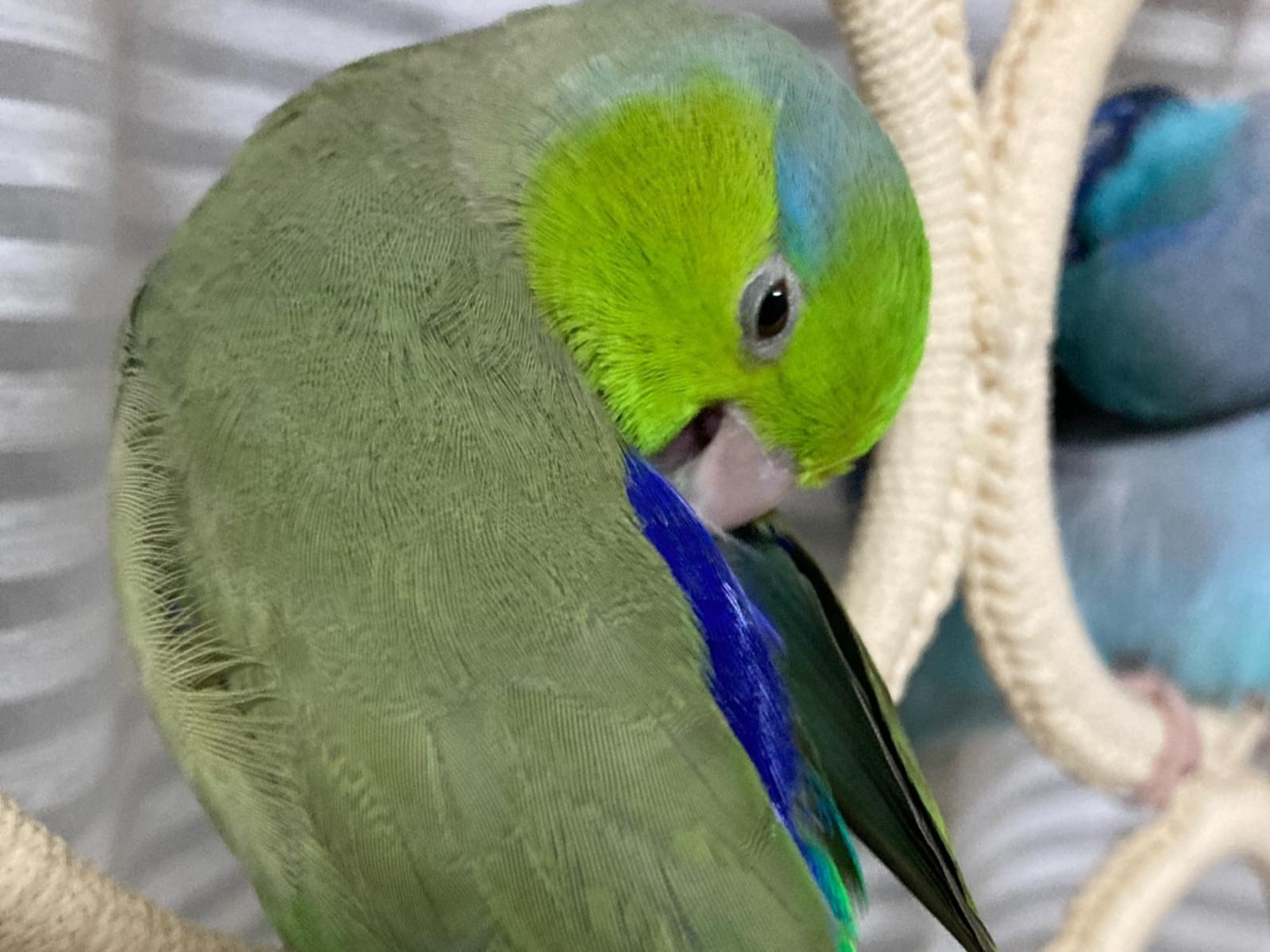 1月28日に私の不注意でゲージから飛んで行ってしまったマメルリハインコです。