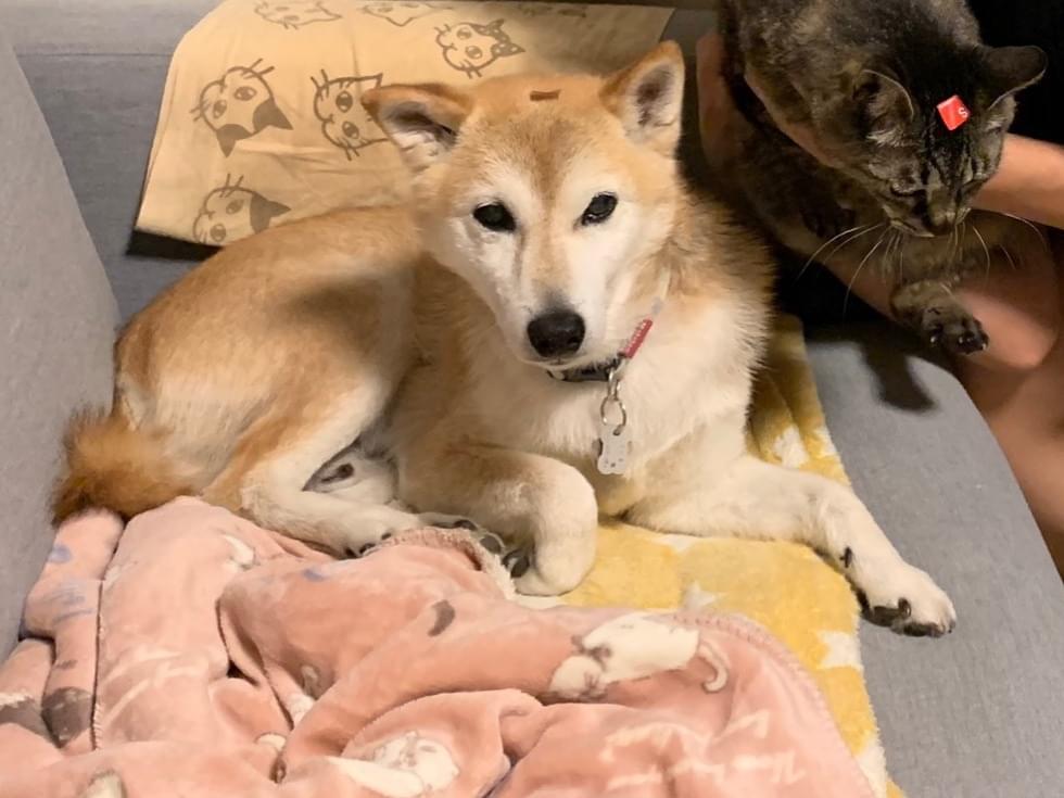 ・横浜市の鑑札、狂犬病予防済みプレートをつけています。