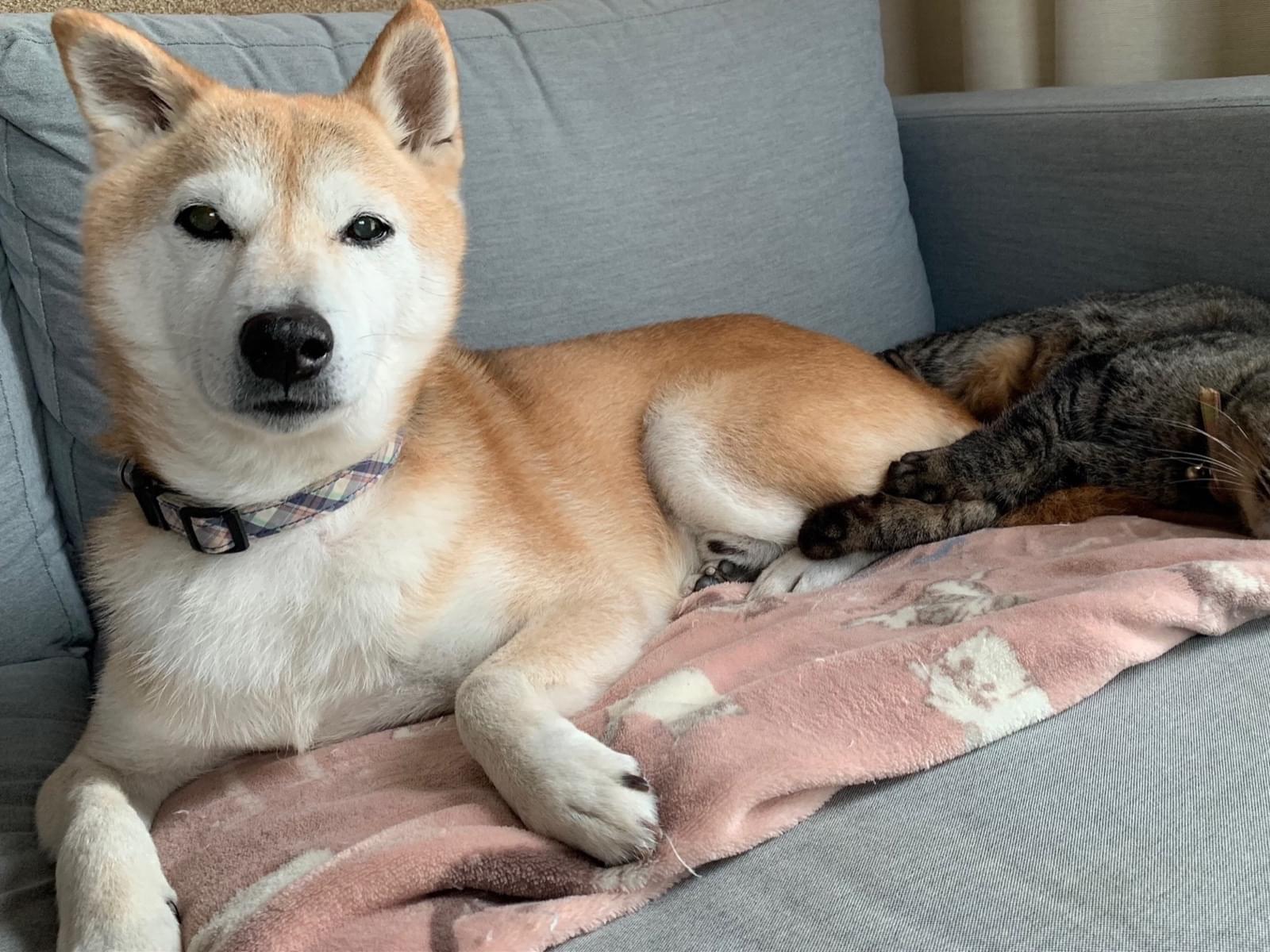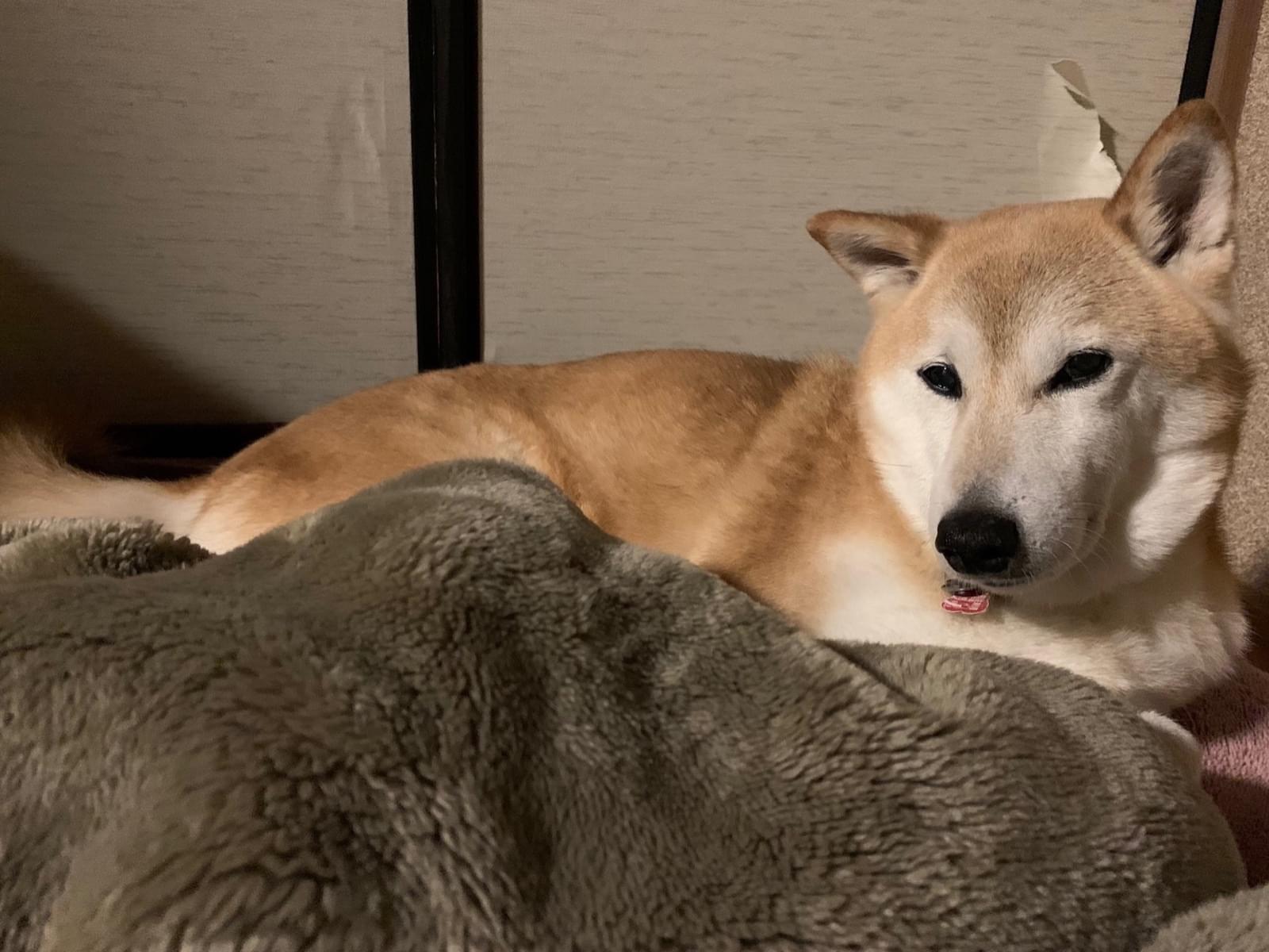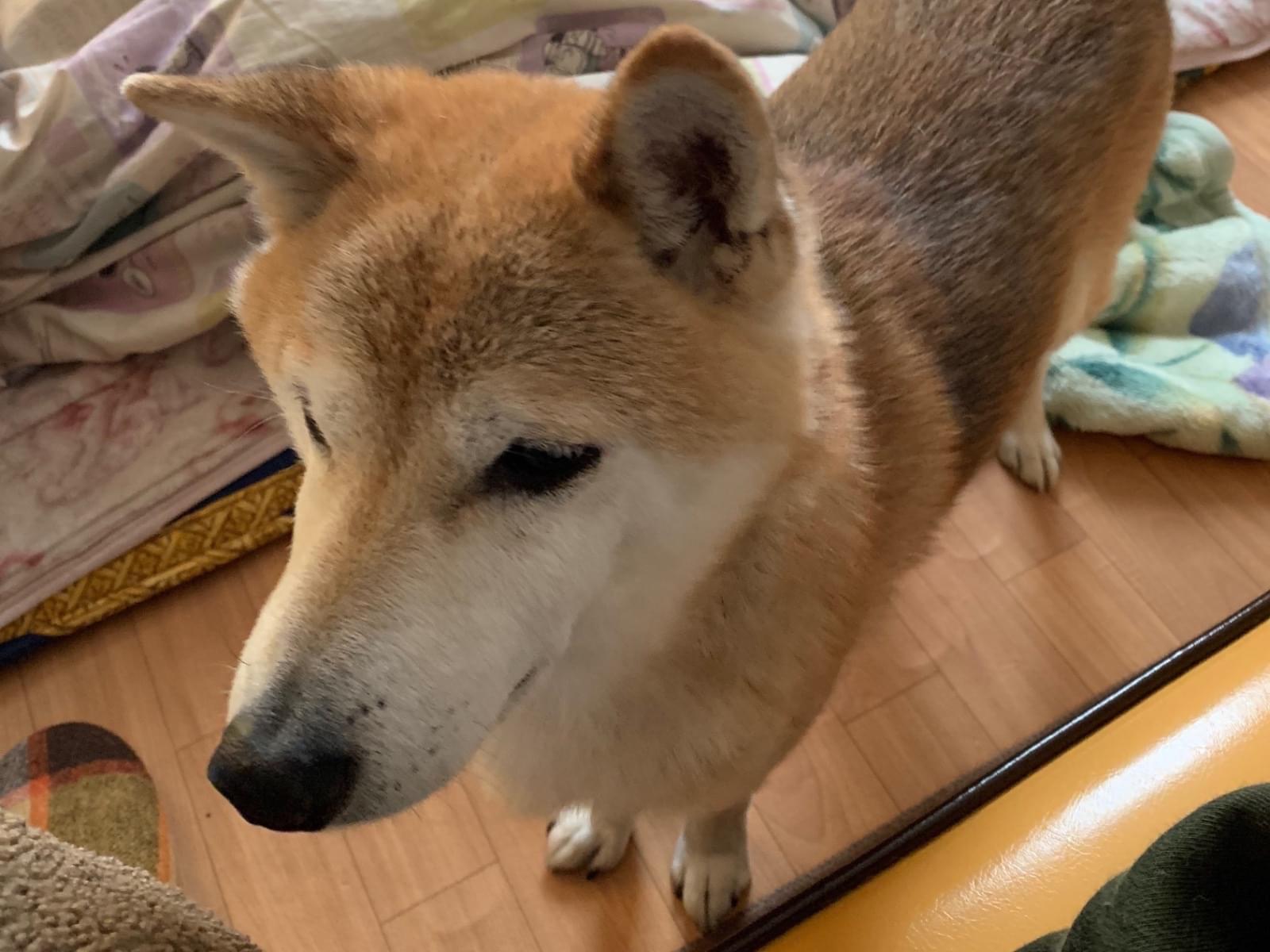 ・茶色ベースに、ところどころ黒混じりの柴犬です。