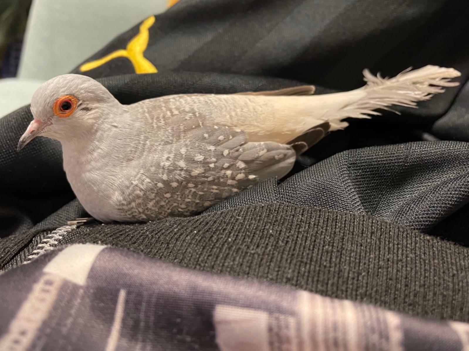 大阪府泉佐野市でウスユキバトを飼育していた所、逃してしまいました。銀色のミニサイズの鳩です。尻尾が荒く毛羽立っているのが特徴です。