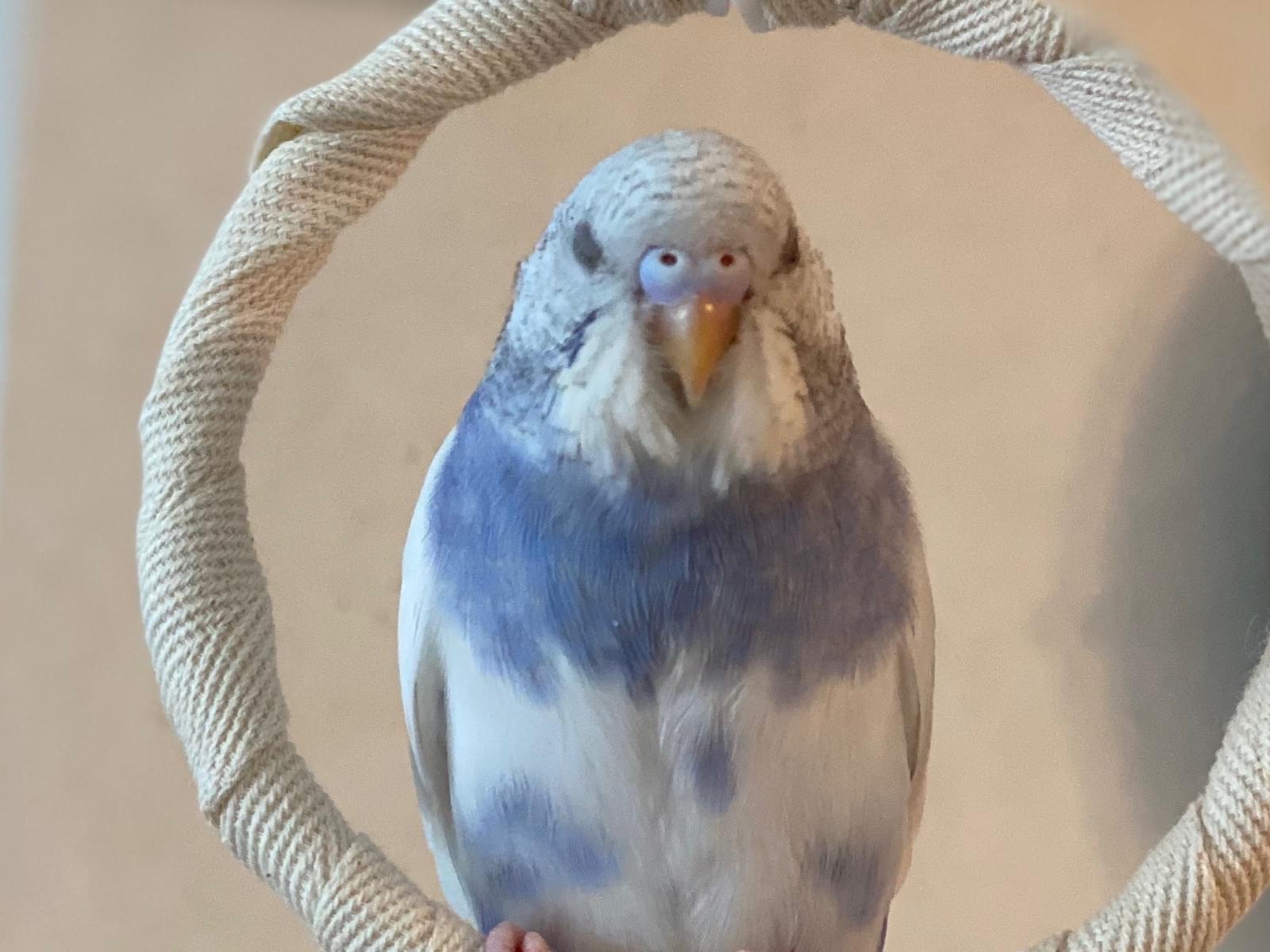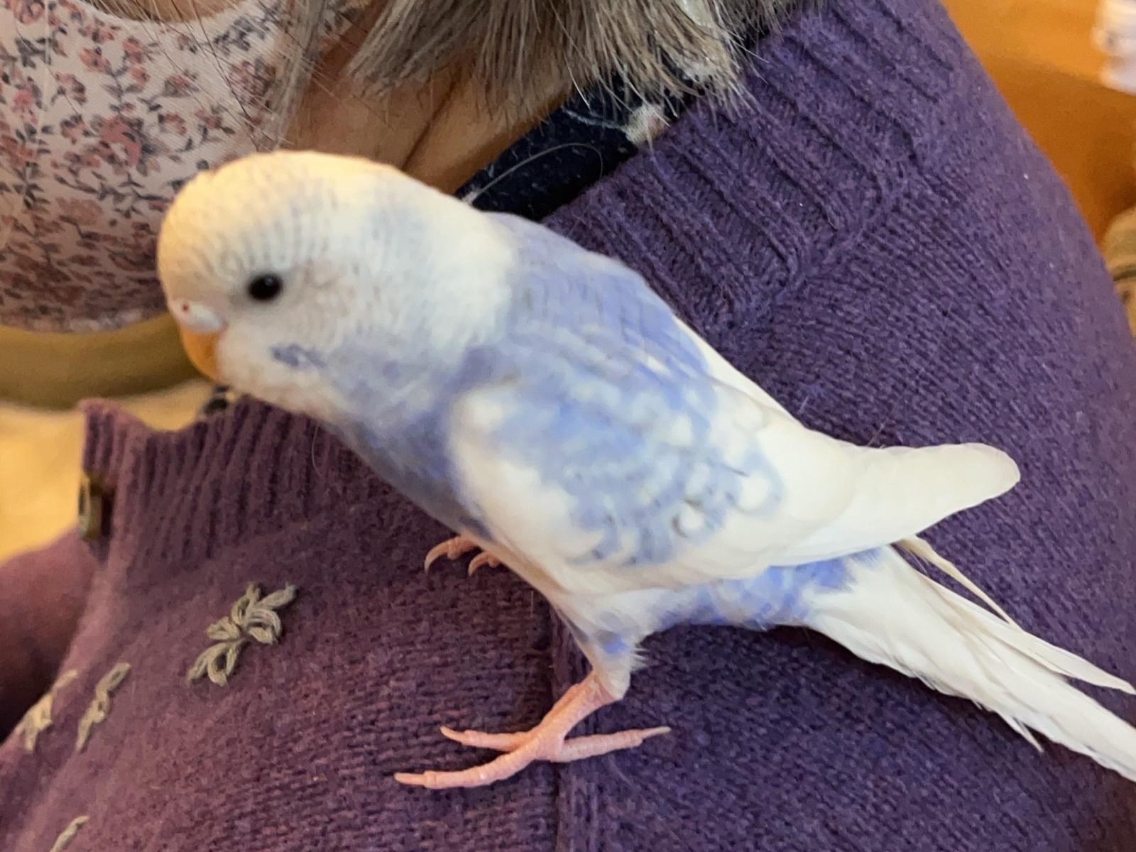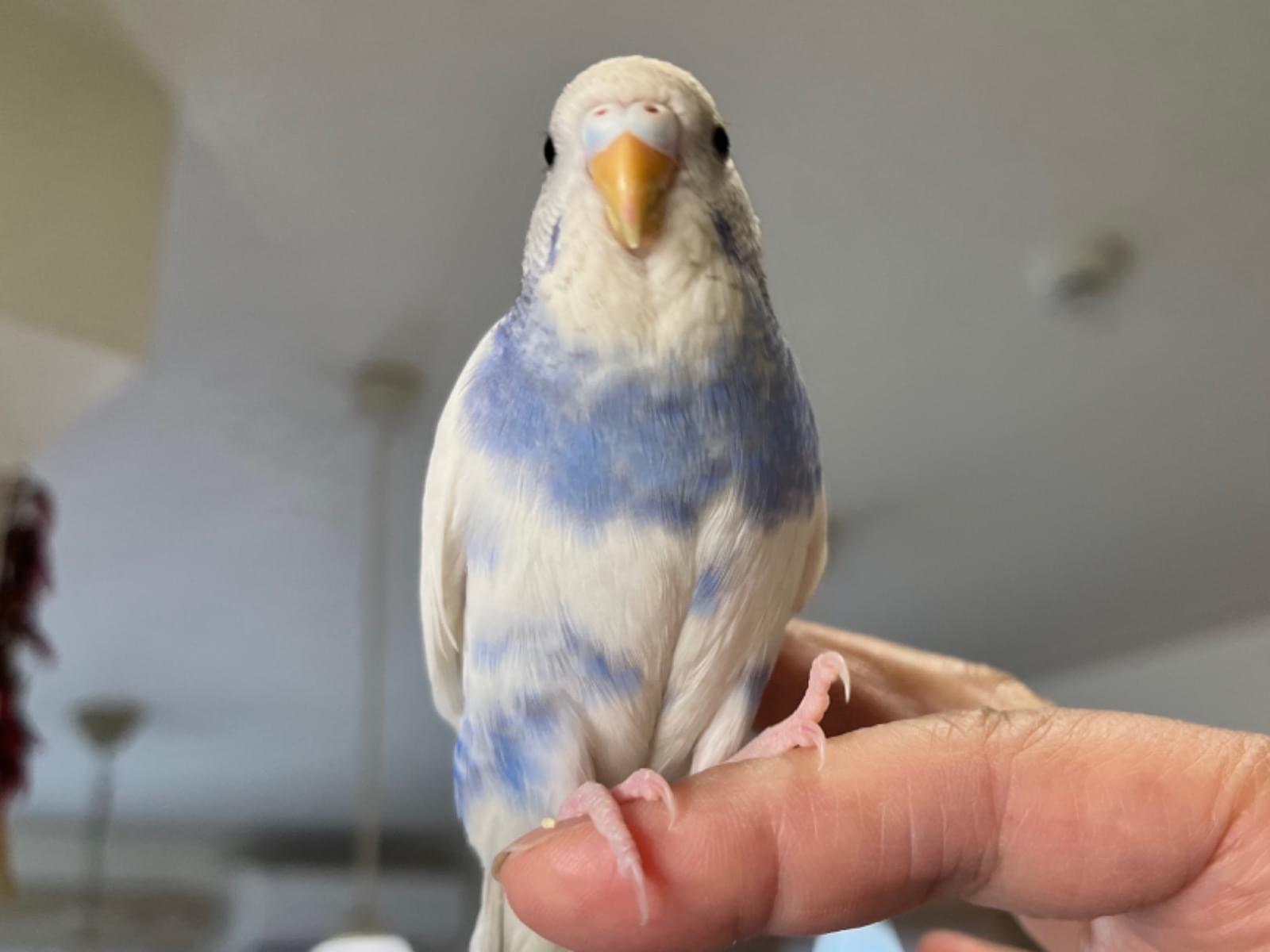 セキセイインコ白と水色のまだ生後3ヶ月で飛び回るのが大好きな人なつこい性格
