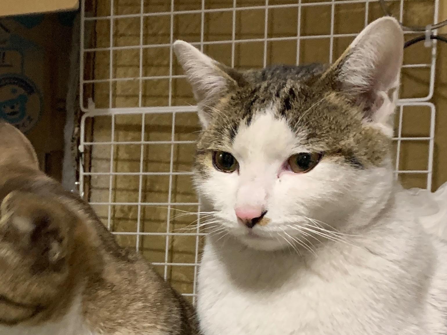 岡山市北区駅元町付近で2/4にいなくなりました。耳の後ろが白いのが特徴で全体的には白と茶黒です。大きさはネコとしては少し大きめだと思います。ある程度人には慣れていますが知らない人には近づきません。
