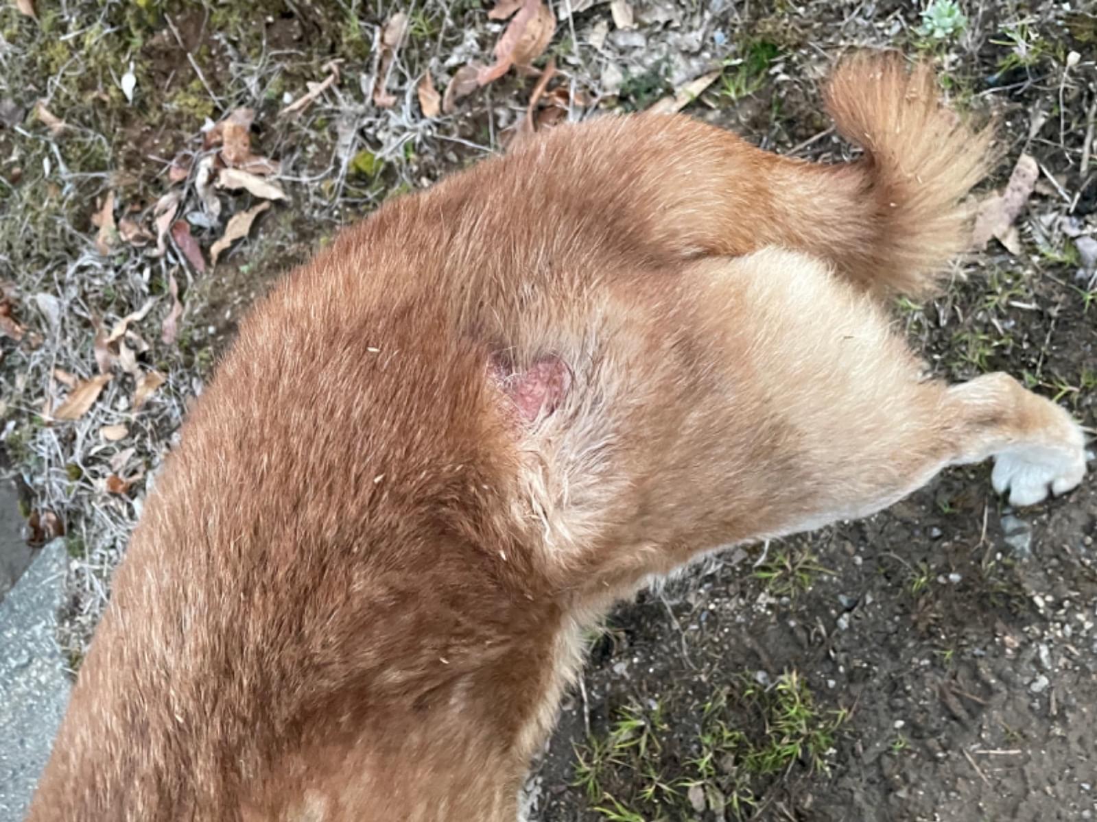 首輪の跡はあるけど首輪は外れたのか捨てられたのかでしてないです。