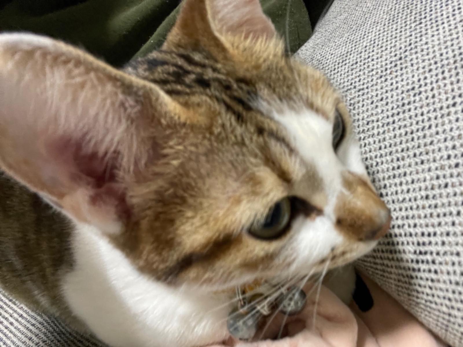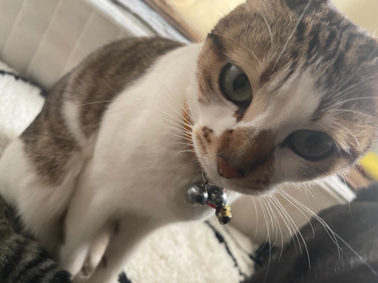 首輪が取れてなければ黄色い首輪してて鈴が3個着いてます。