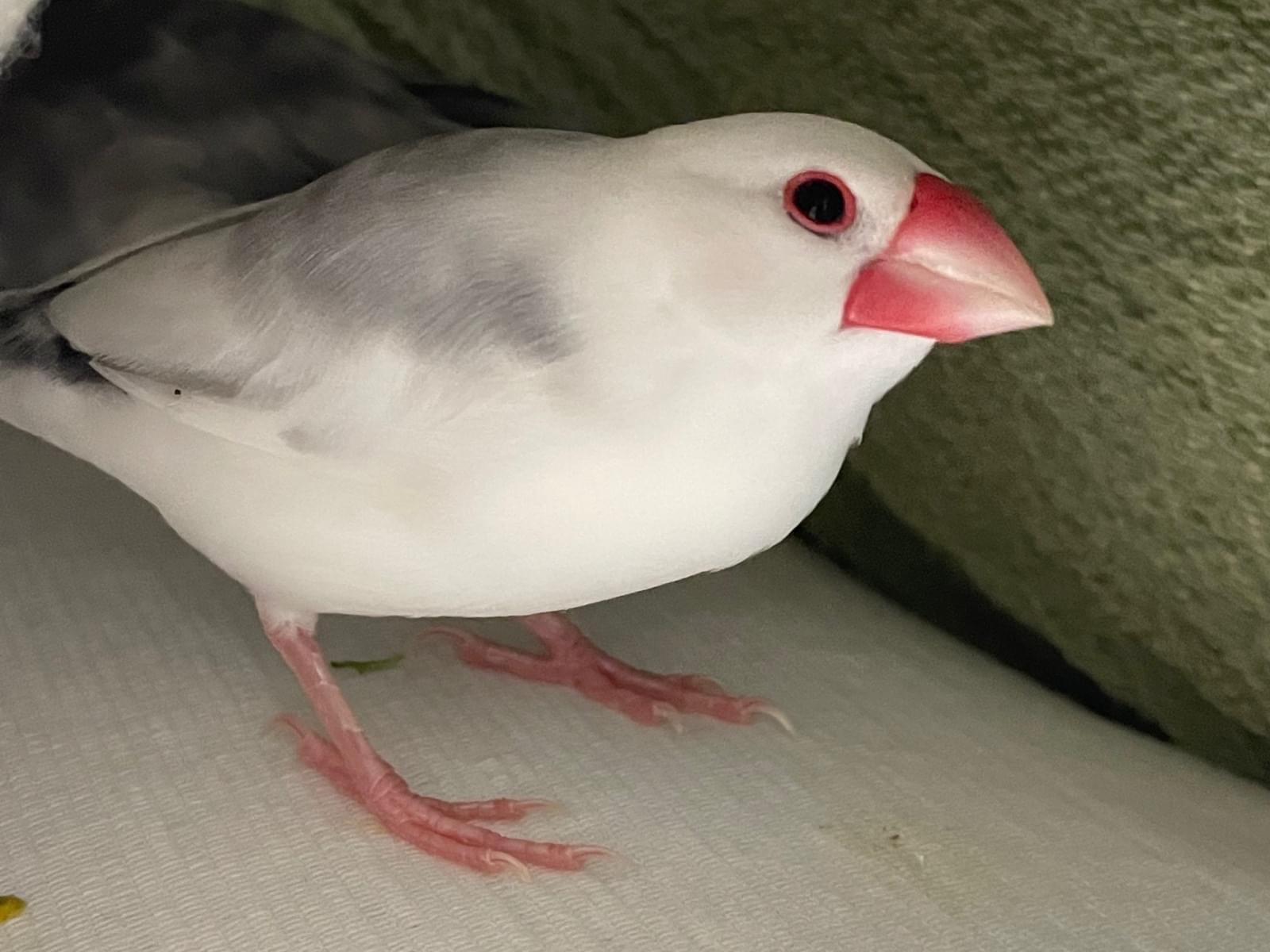 白文鳥ですが背中がグレー混じりです。画像よりグレーは薄めです。吹田市方面へ飛んで行ってしまいました。目撃情報、近隣で文鳥を保護したなど、どんなことでも良いです、情報提供お願いします。