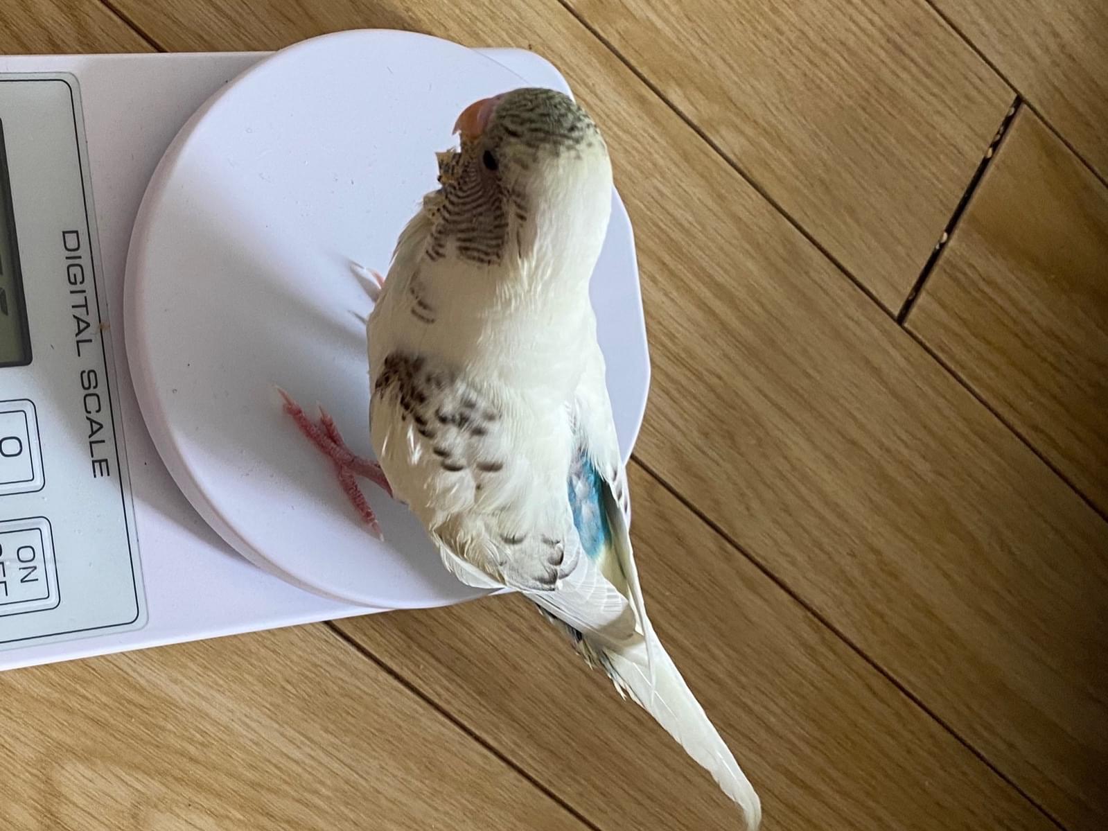体の色はほぼ白で一部尻尾の所のみ青色です。