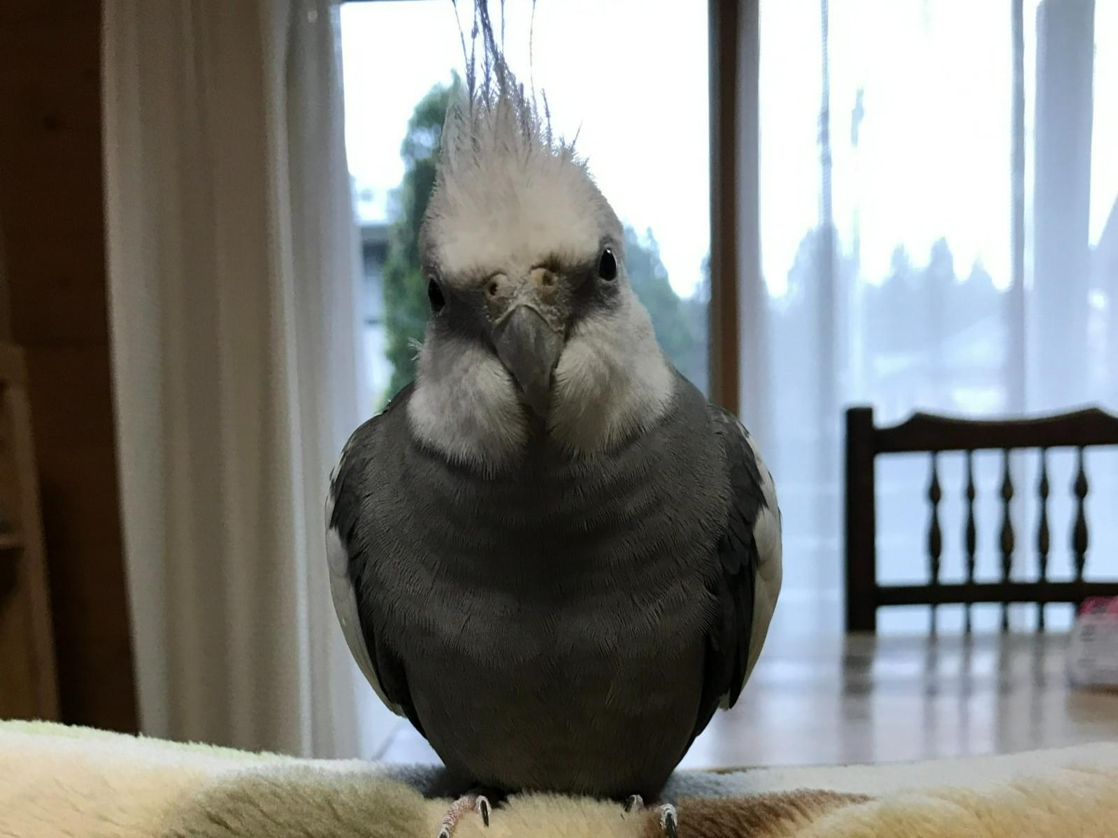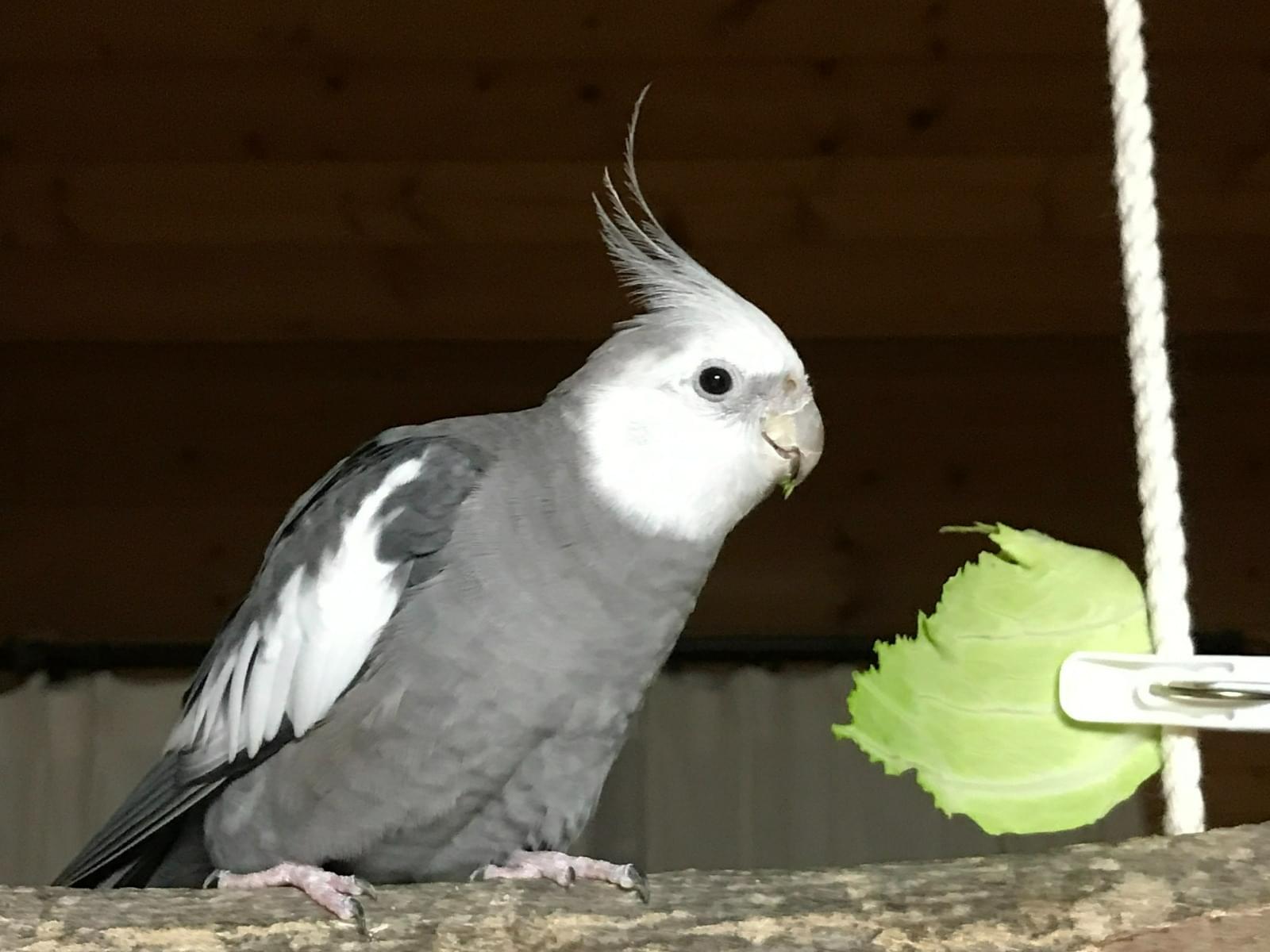 チークのないグレーと白色のオカメインコ探してます。