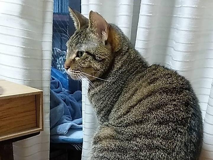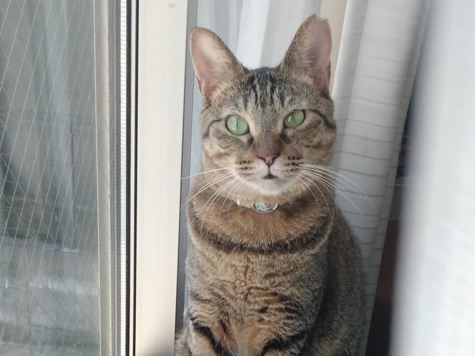 喉から胸元にかけて皮膚の炎症があり、毛が抜けていたため首輪はしていません。