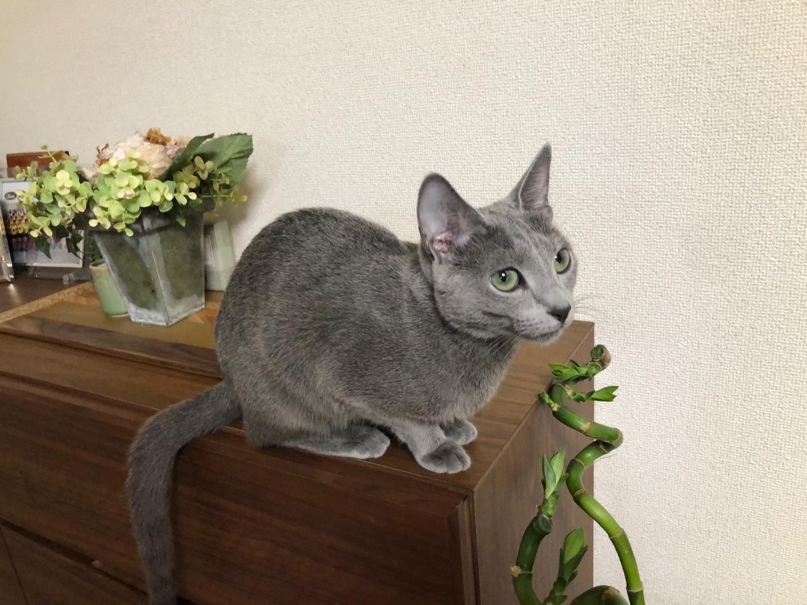 ロシアンブルーの男の子 体重5キロ 首輪ナシ 瞳グリーン グレーの毛色 一見ブリティッシュショートヘア風です。