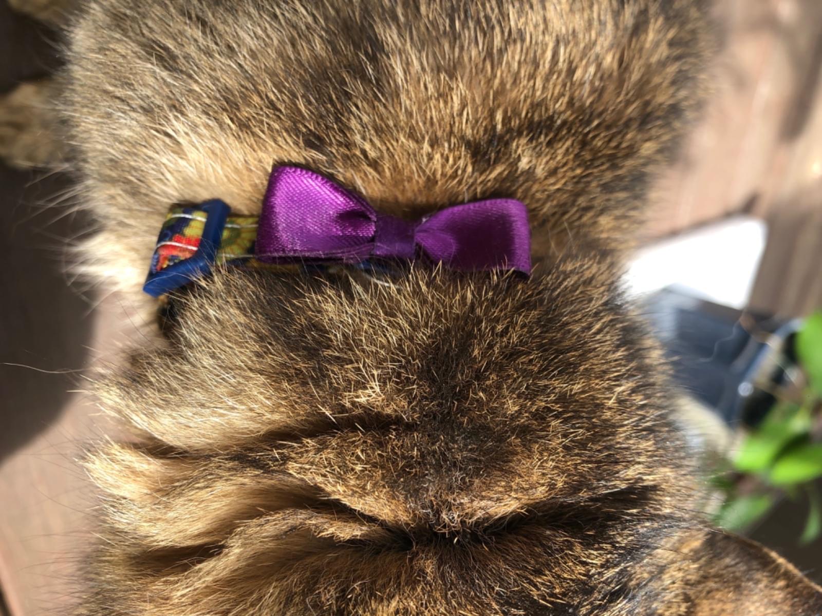庭にリボンのついた首輪をした猫が来ました。