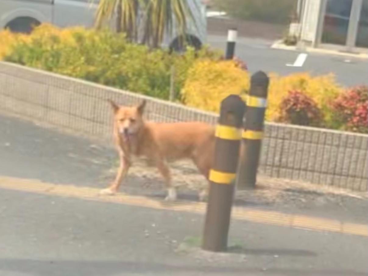 4/14に目撃。首輪やハーネスはなしで、尖った耳と長い尻尾が印象的。吠えることはなく毛並みは綺麗でした。