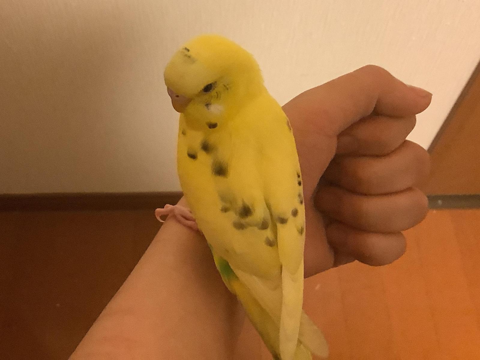 黄色セキセイインコ保護しています。全体的に黄色も胴体に黄緑色が入っている
