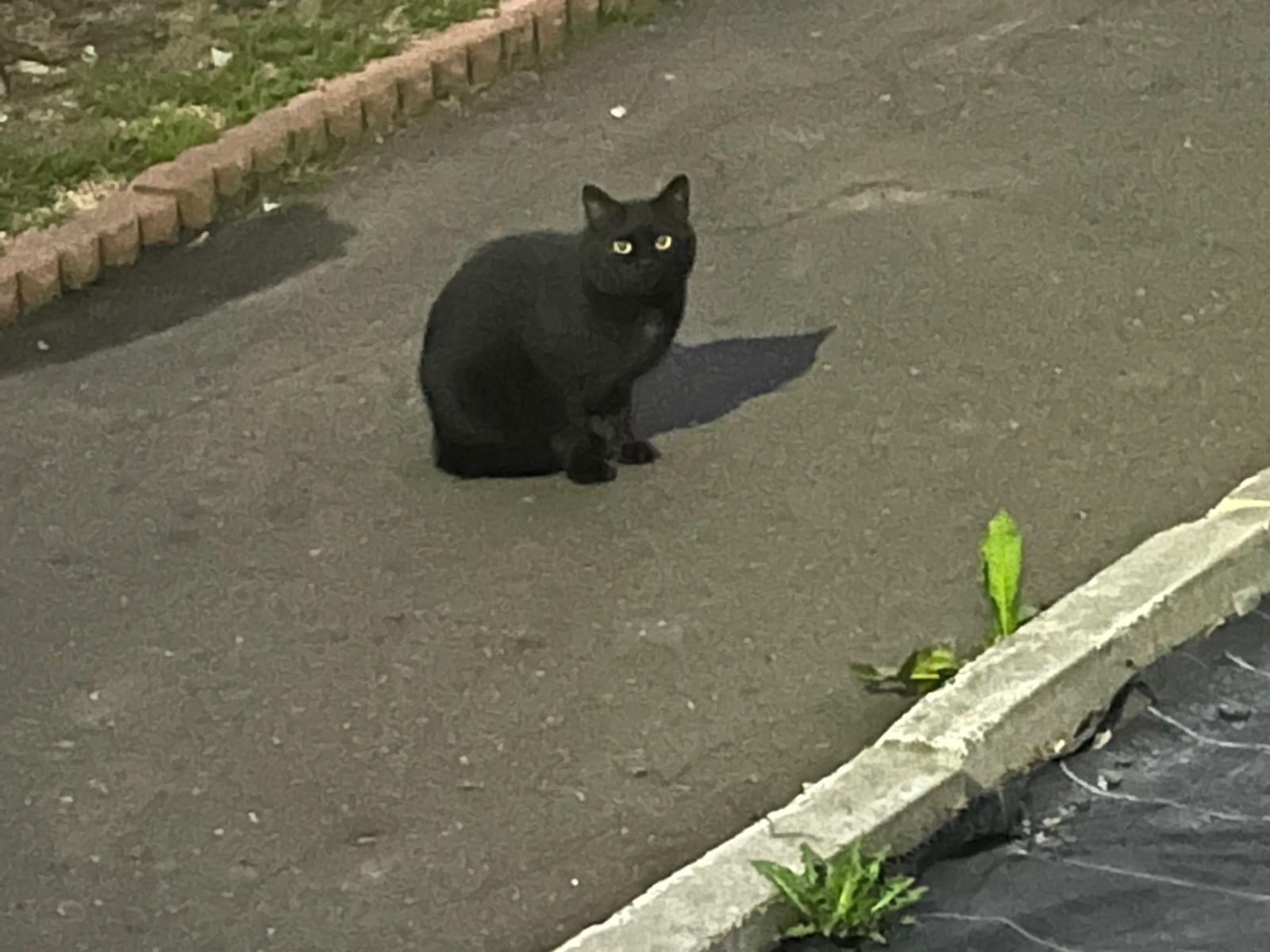 こちらの様子を伺いつつ、近寄っても逃げません。綺麗な毛並みで飼い主さんが、いる様な気がします。