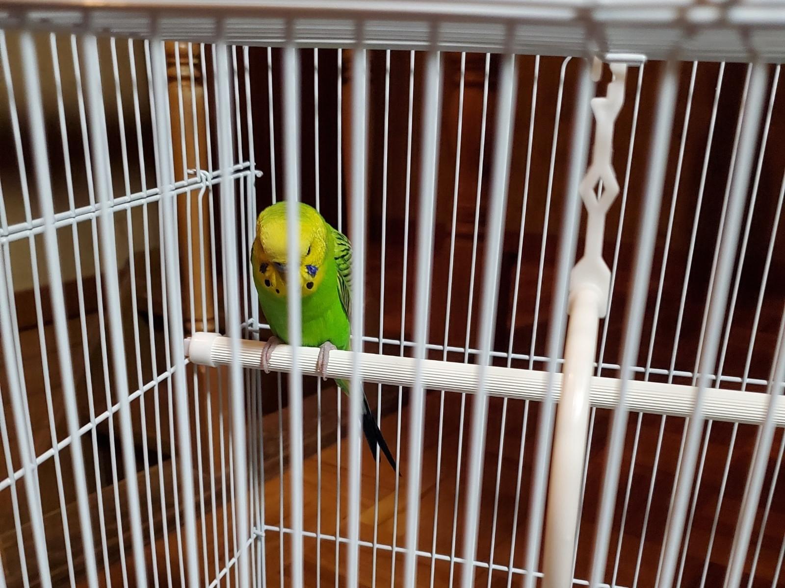 富山県富山市で黄緑色の雄のセキセイインコを保護しました