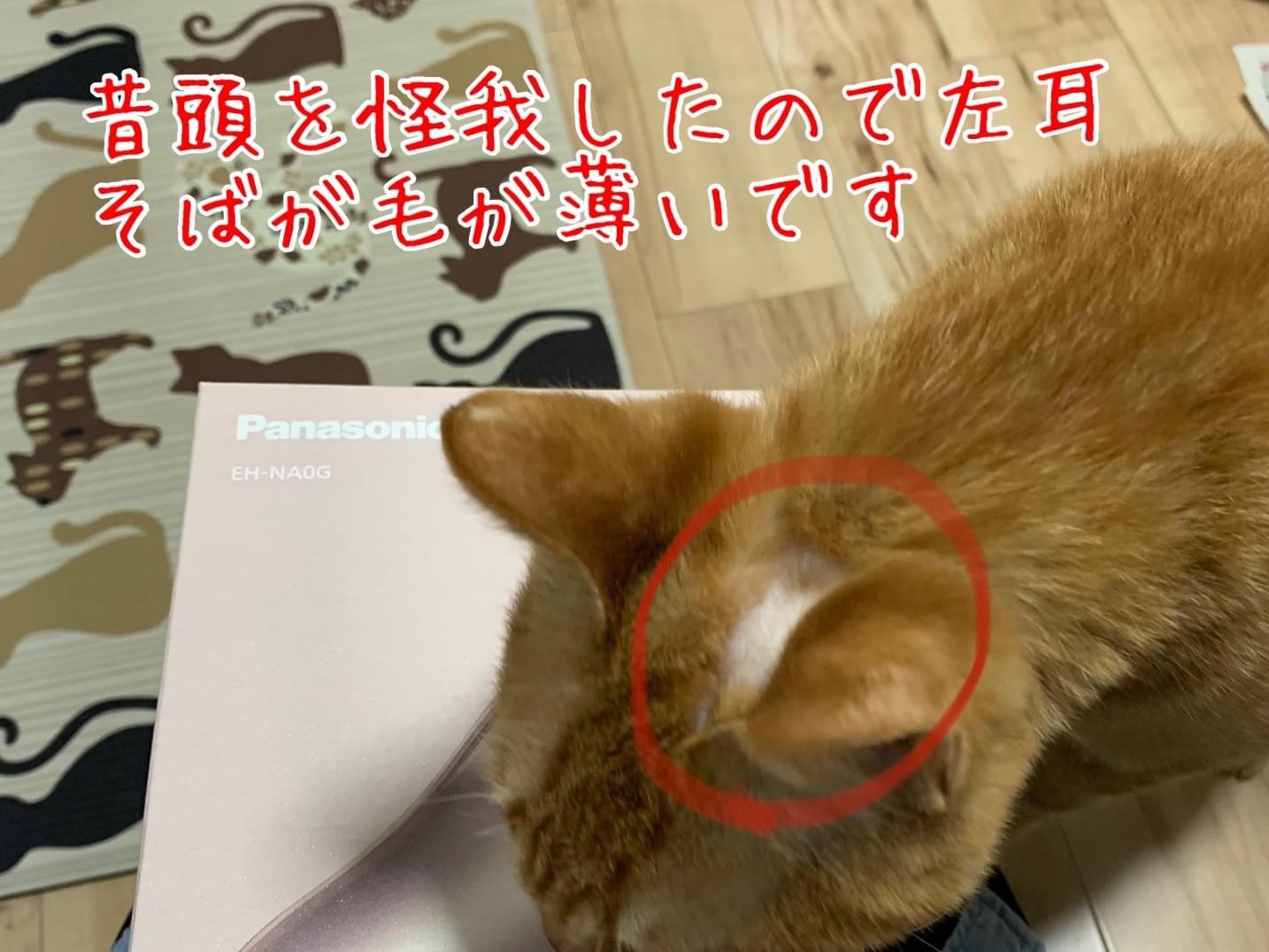 •子猫の頃に頭を怪我してその名残りで左耳そばの毛が薄いです