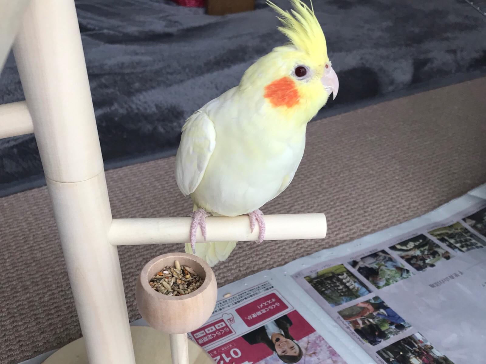 羽はペットショップでカットしてもらっていて、くちばしにグレーの小さな模様があります。
