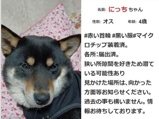 #赤い首輪 #黒い服#4歳#マイクロチップ装着済。 各所:届出済。