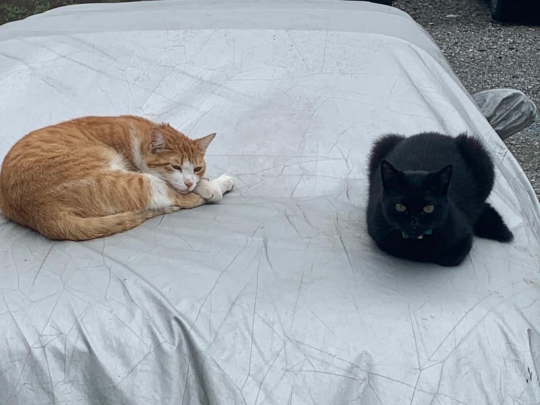 江戸川区春江町 付近で 茶トラオスと黒ネコメス 2匹同時に帰って来なくなりました、探しています。 春江橋付近の土手によく遊びに行っていました。 当時首輪付けております、