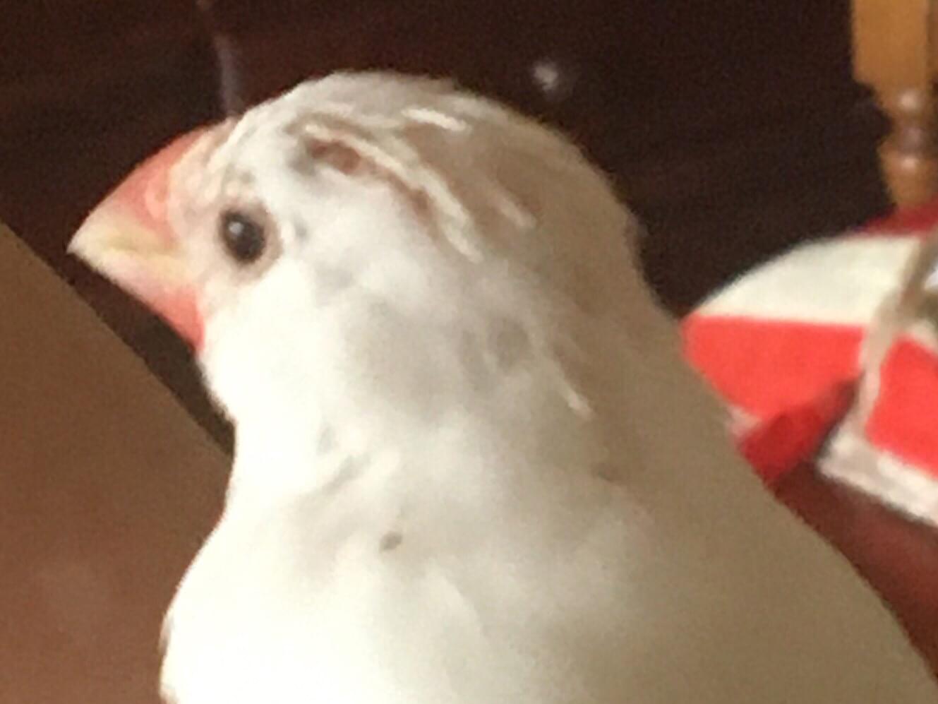白いくちばしだけ赤い文鳥です。