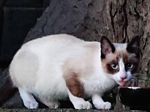 見慣れないラグドールみたいな猫が現れました。人慣れしている様子から迷子猫の可能性があるため病院に連れて行き保護しています