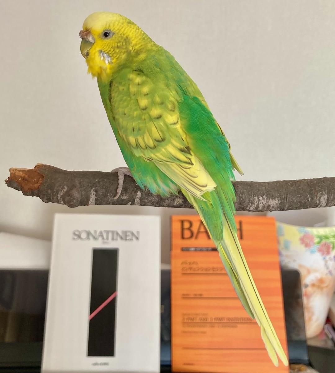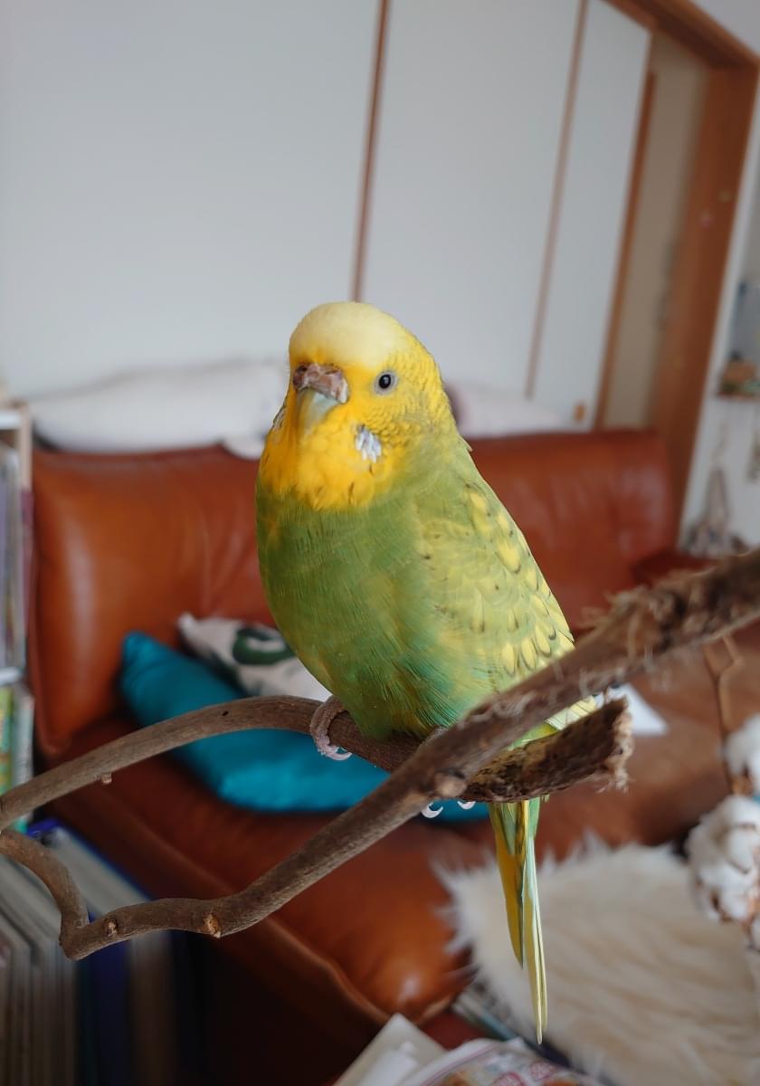 特徴→顔が黄色、体が黄緑色。鼻がベージュです。