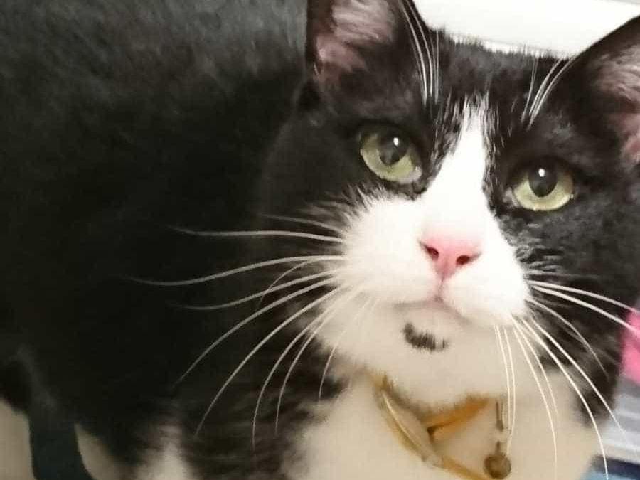 黄色い首輪を着けた ぽっちゃり体型の白黒の猫を探してます