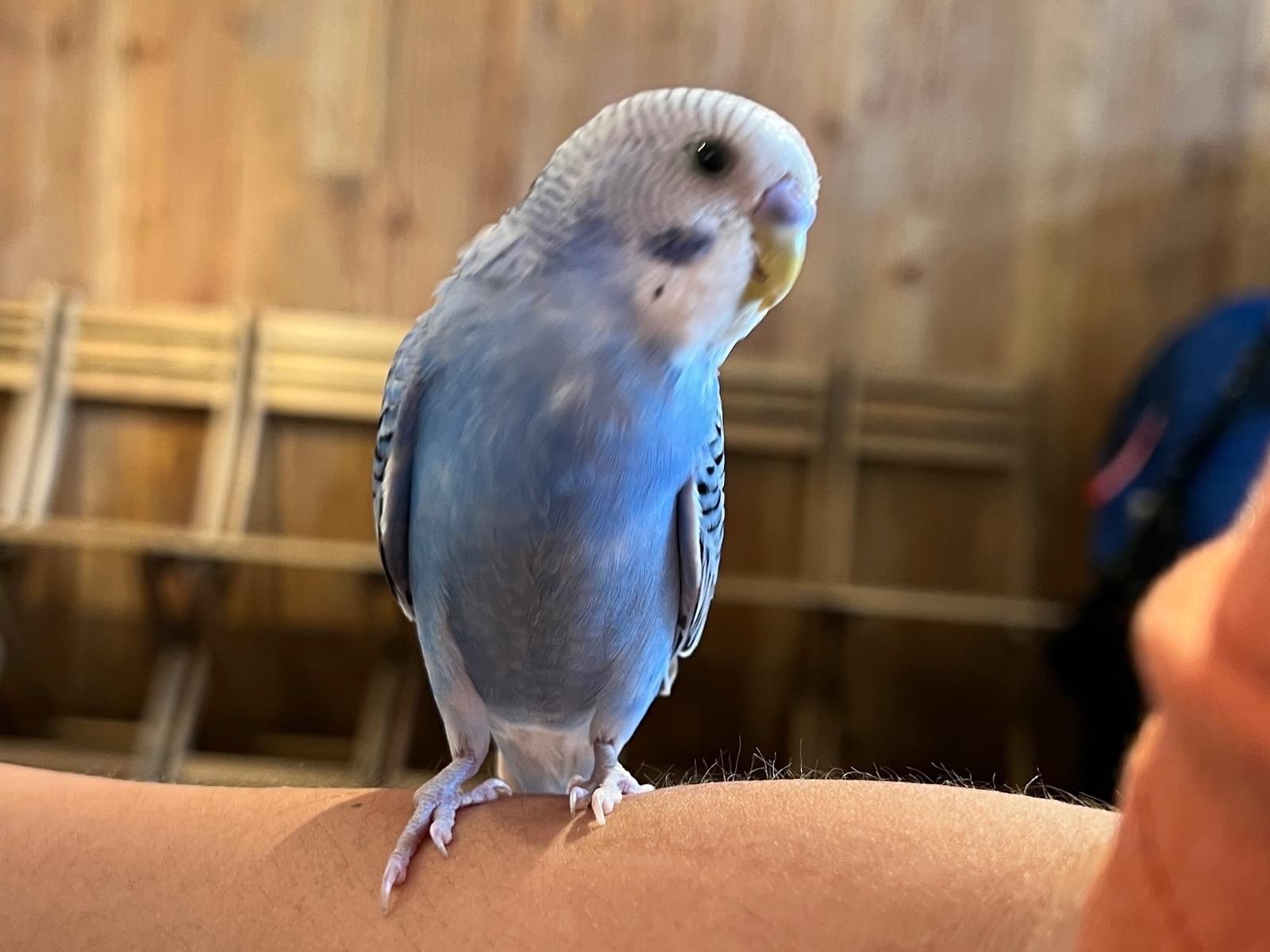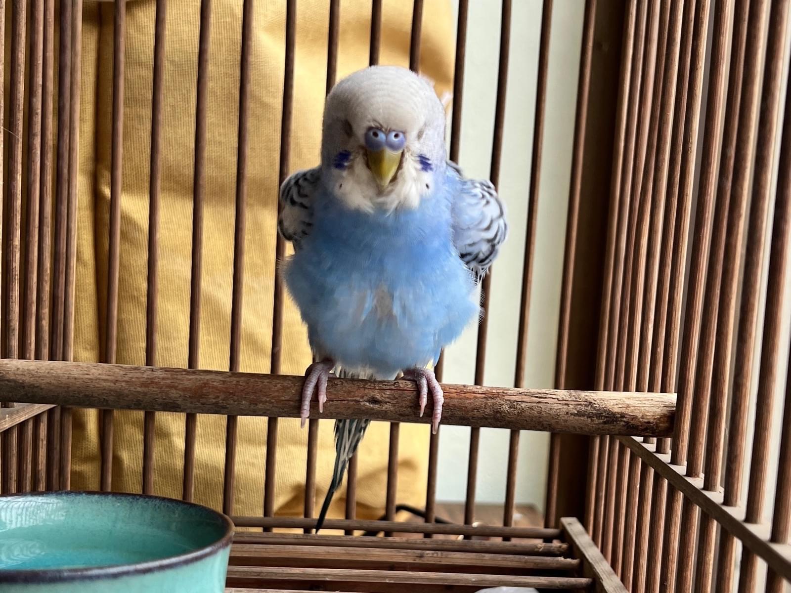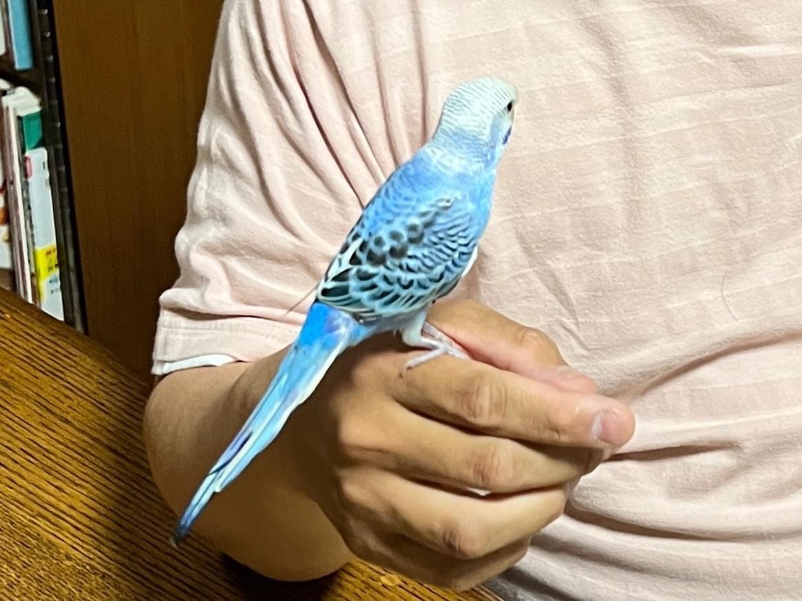 セキセイインコ、ブルー、羽カットで飛ばない一歳未満を保護しています。