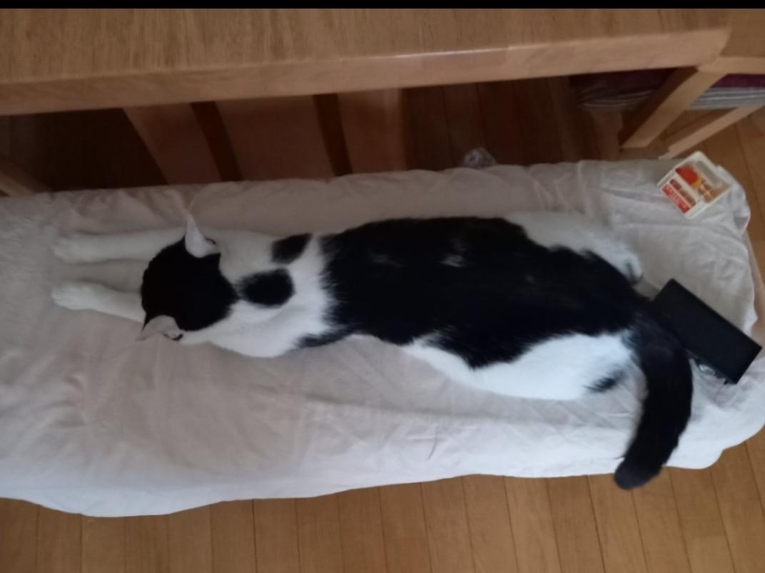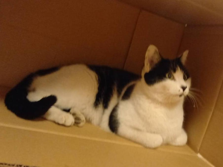 黒の割合が多めの白黒猫ちゃんで、低い声で泣きます