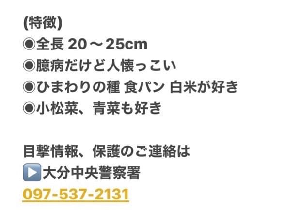目撃情報、保護のご連絡をお待ちしております。
