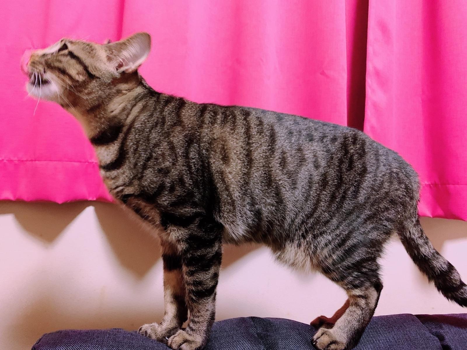 名前は『リク』と言い、しっぽが曲がっているのが特徴です。声は可愛く高い声で鳴き、性格は結構甘えんぼうです。首輪などはつけていないです。去勢は済んでいます。