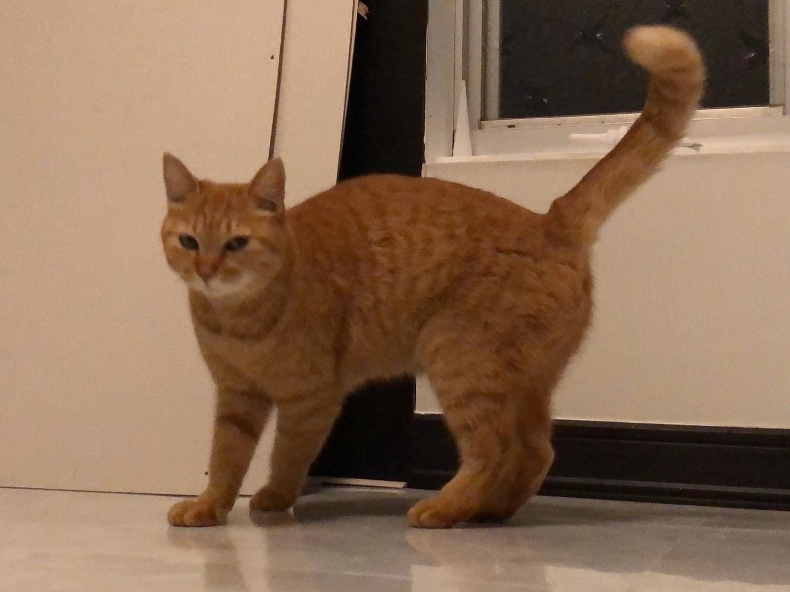 警戒心が強めですが、甘えたで小さな声で鳴きながらスリスリしてきます。
