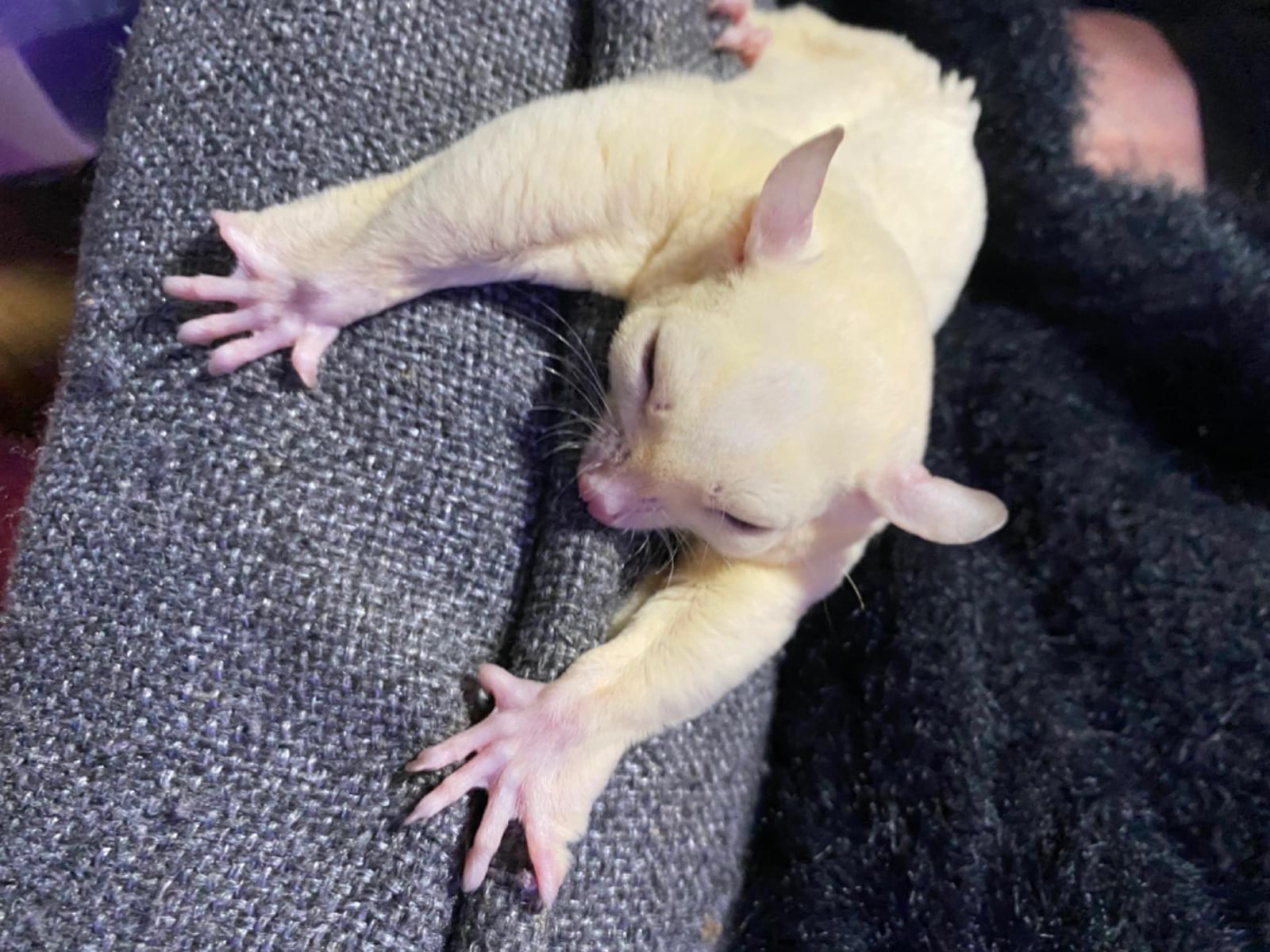 ホワイトフェイスのモモンガ女の子、多少は人慣れしてるかと思います。