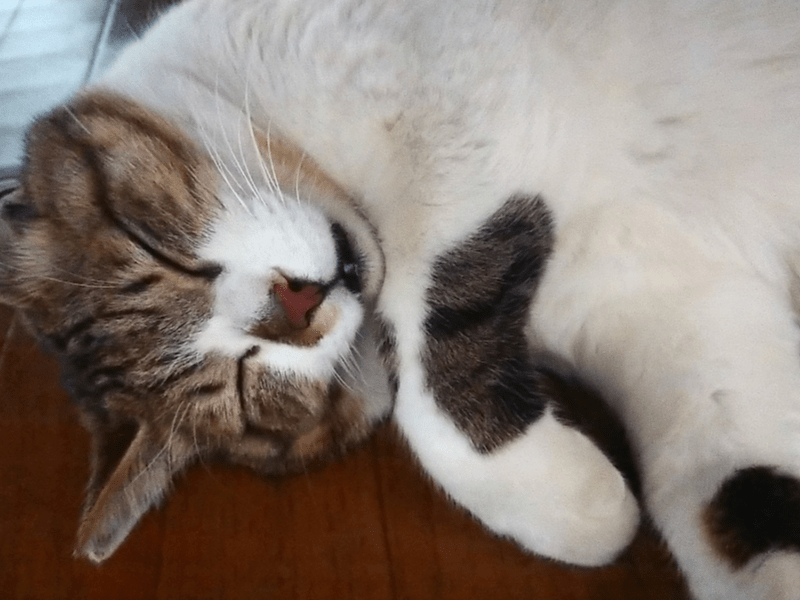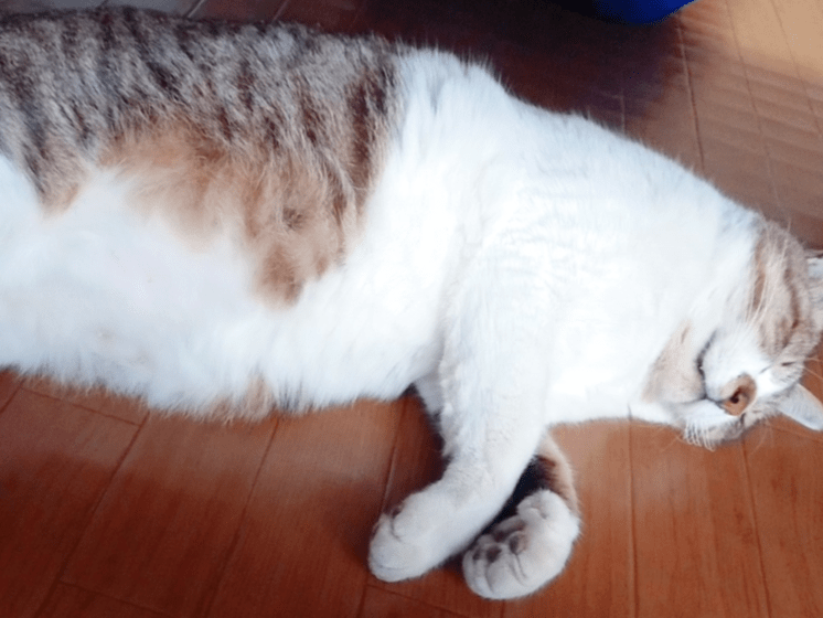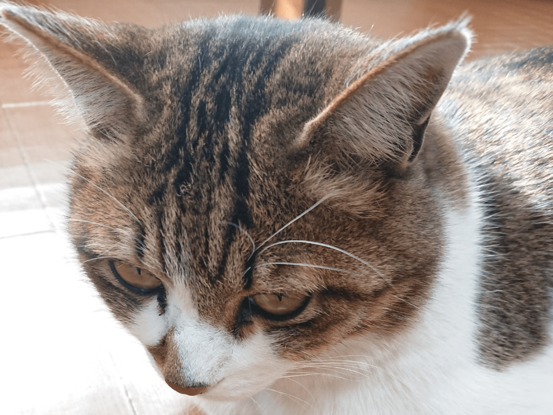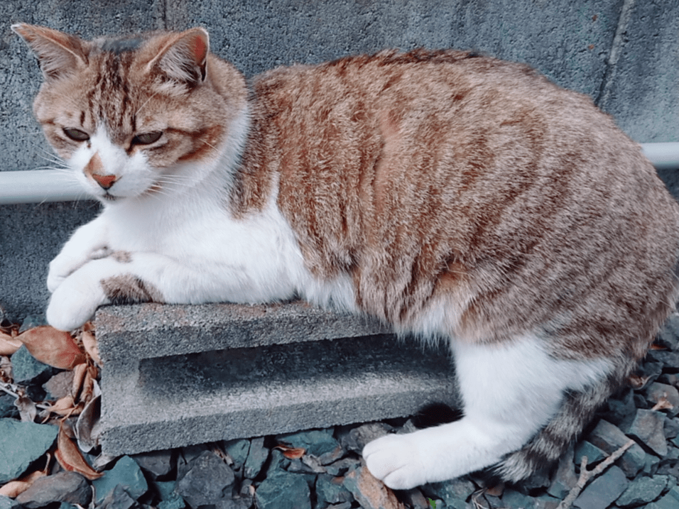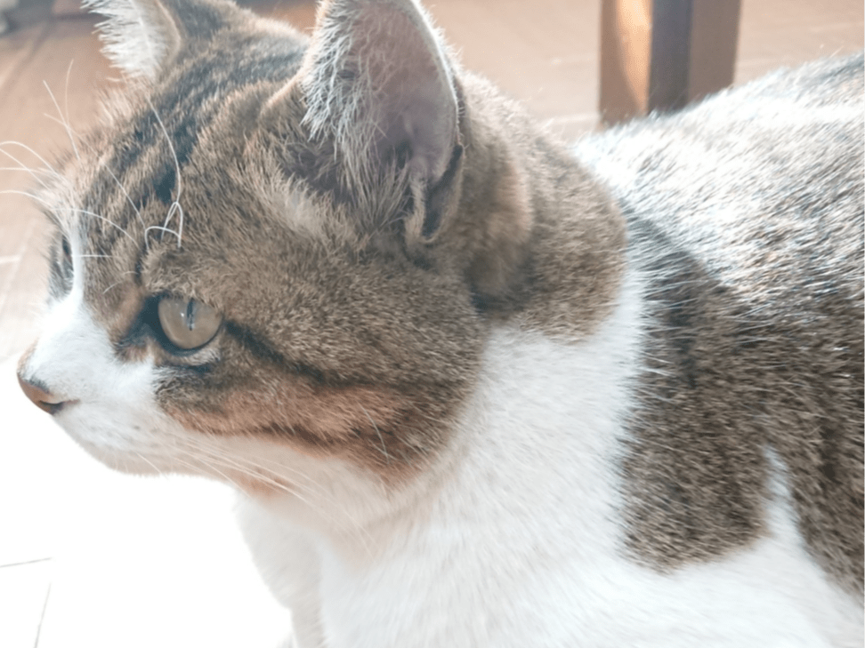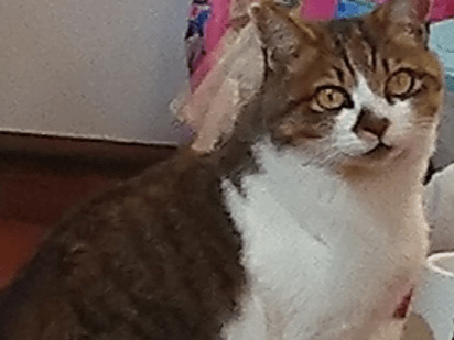 ニャーと泣かない猫です。太っています。鼻が悪く、最近は口呼吸をしていることもありました。右目側の鼻に茶色が入っています。首輪はしていません。
