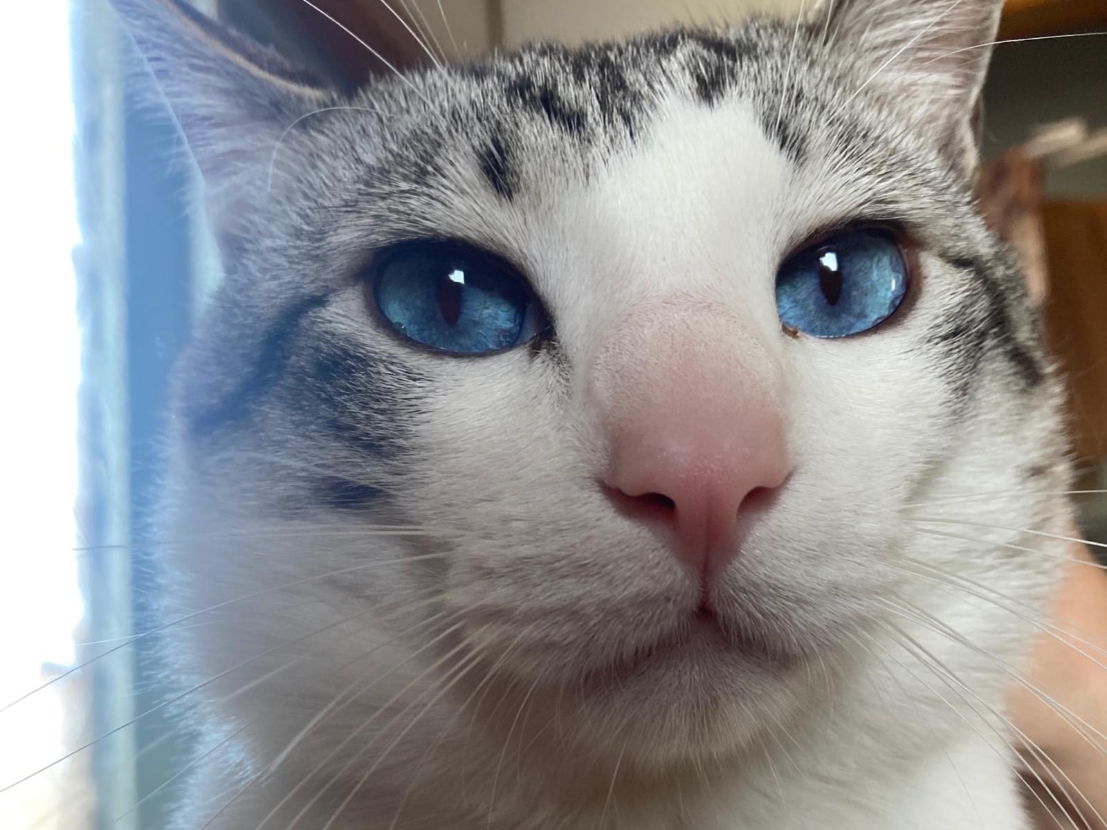 目はブルーで鼻はピンク、尻尾の先端が白いです