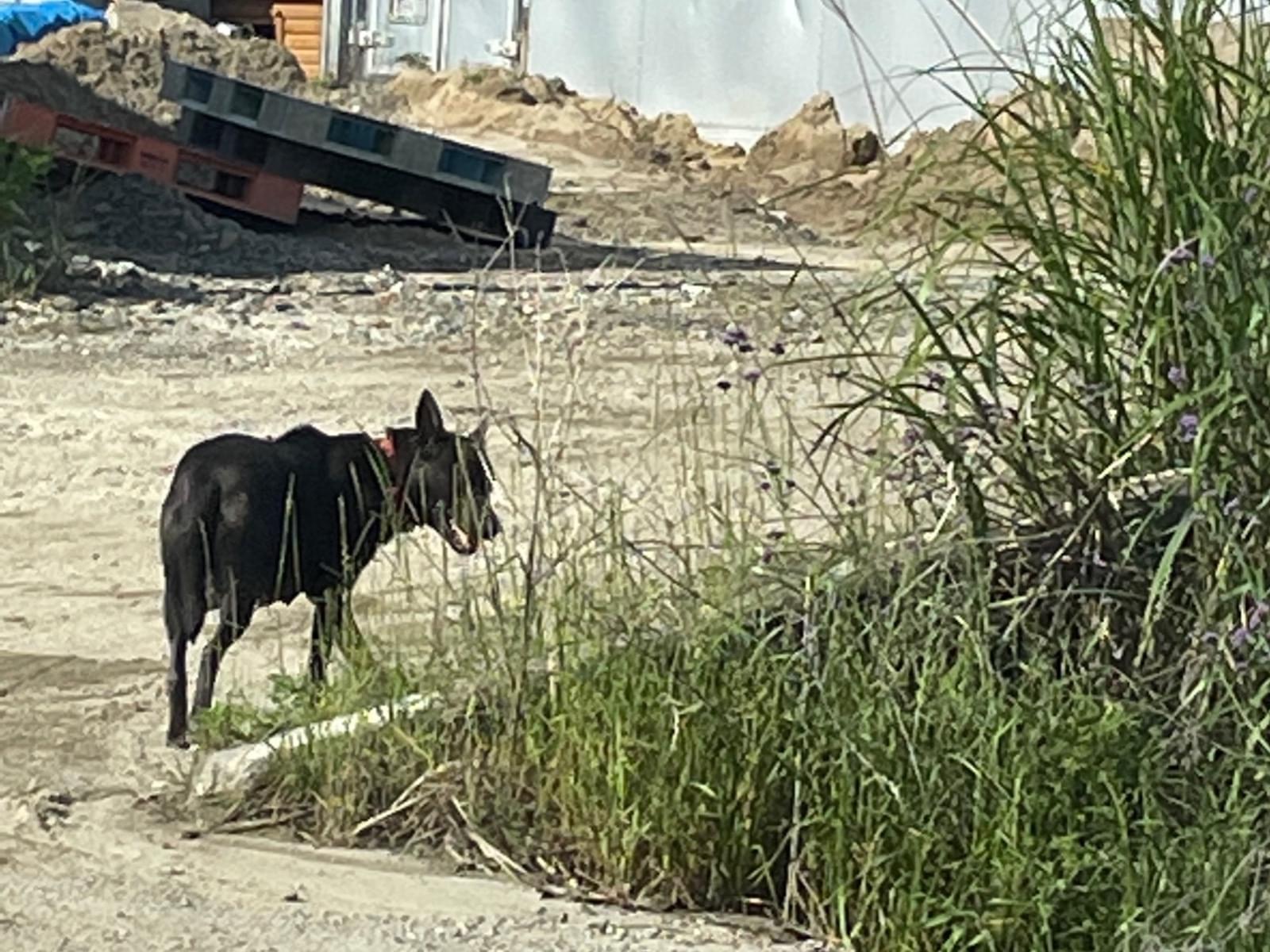 赤っぽい首輪をした黒い犬を見かけました。おっぱいが大きかったので、もしかしたらどこかに子犬がいるのかもしれません。