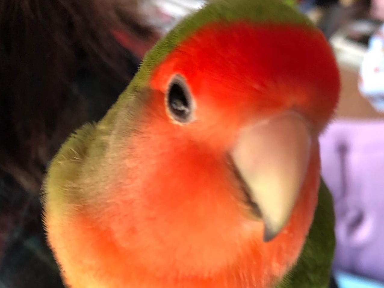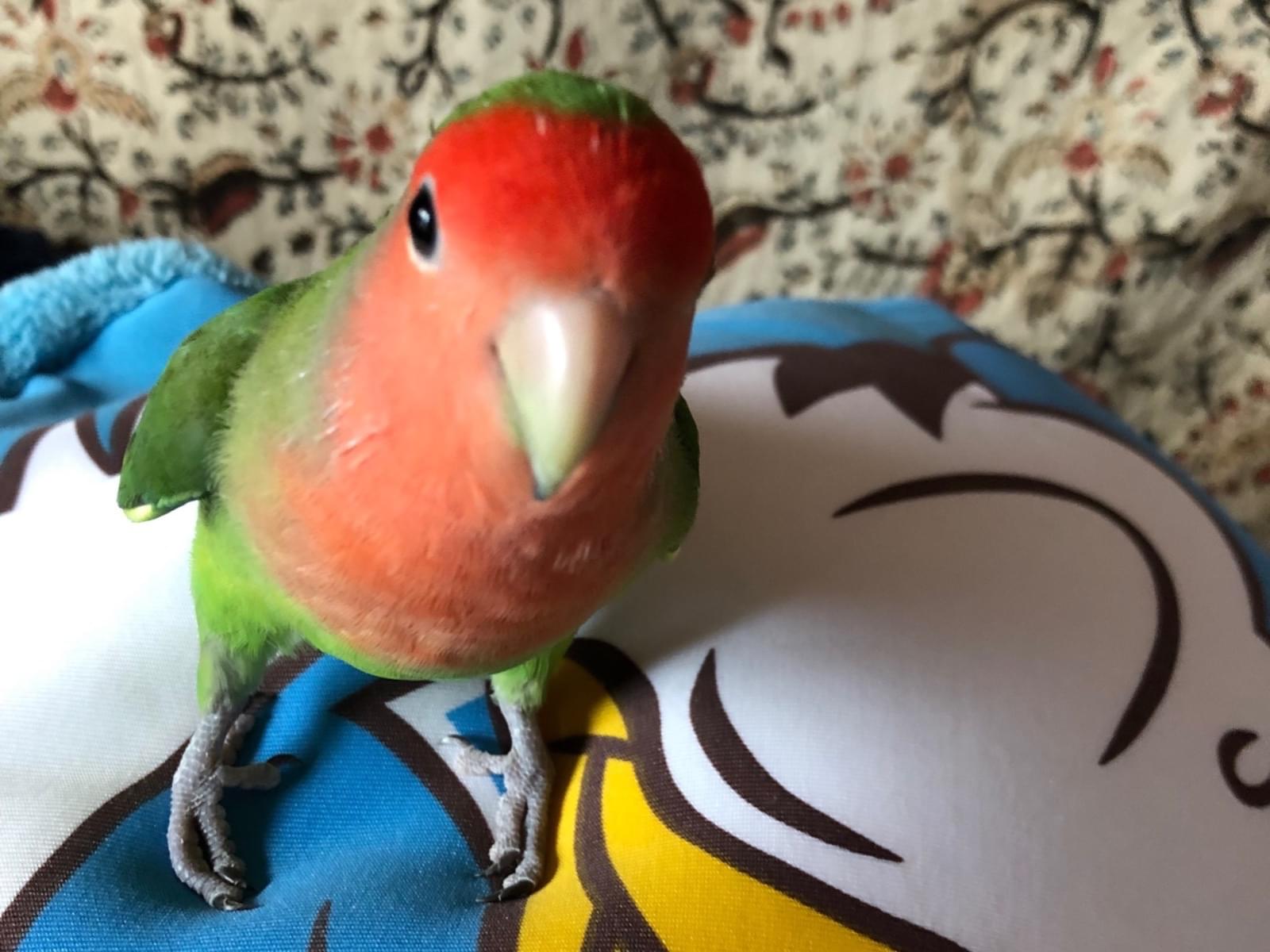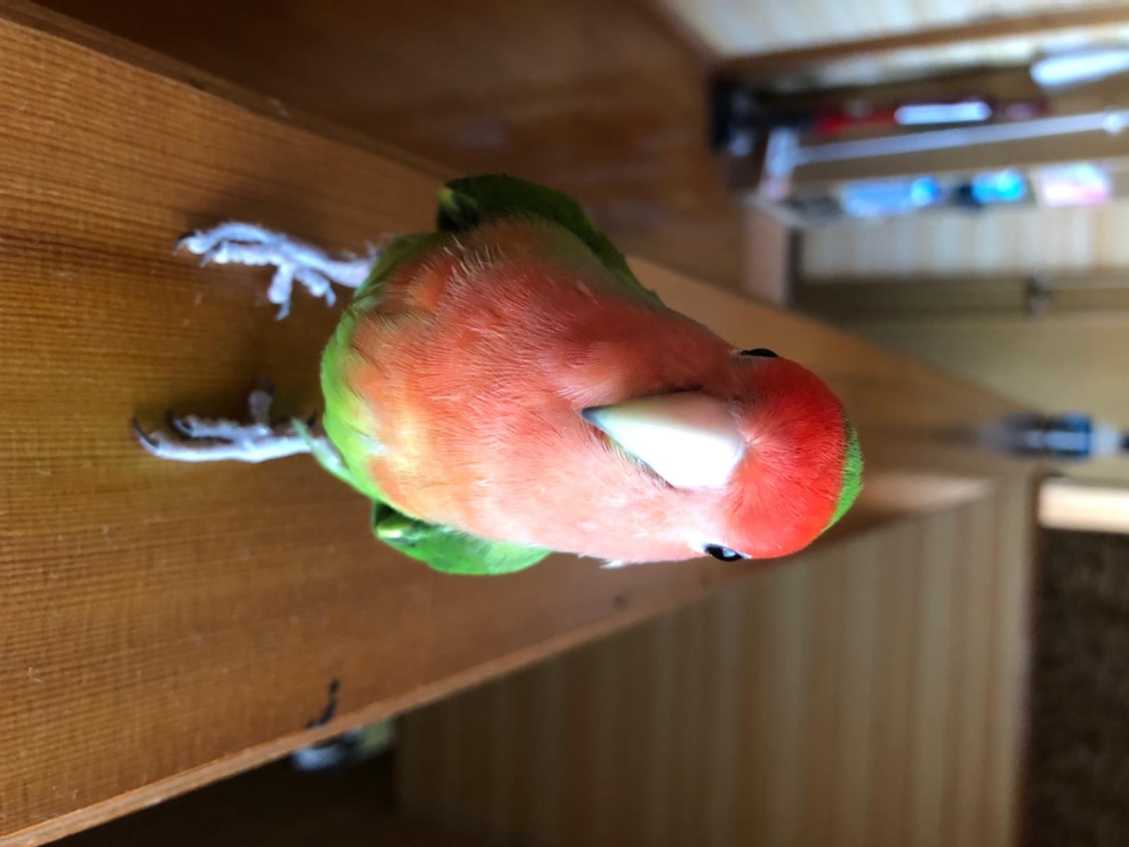 色は緑と赤のノーマルカラー?です。警戒心が非常に強く自分にしかなついておりませんがヒマワリの種や米粒が大好きでその時だけ自分以外の方でも近づいてきます。よく鳴く子でピーちゃん、ヒュイヒュイなどと声を出します。