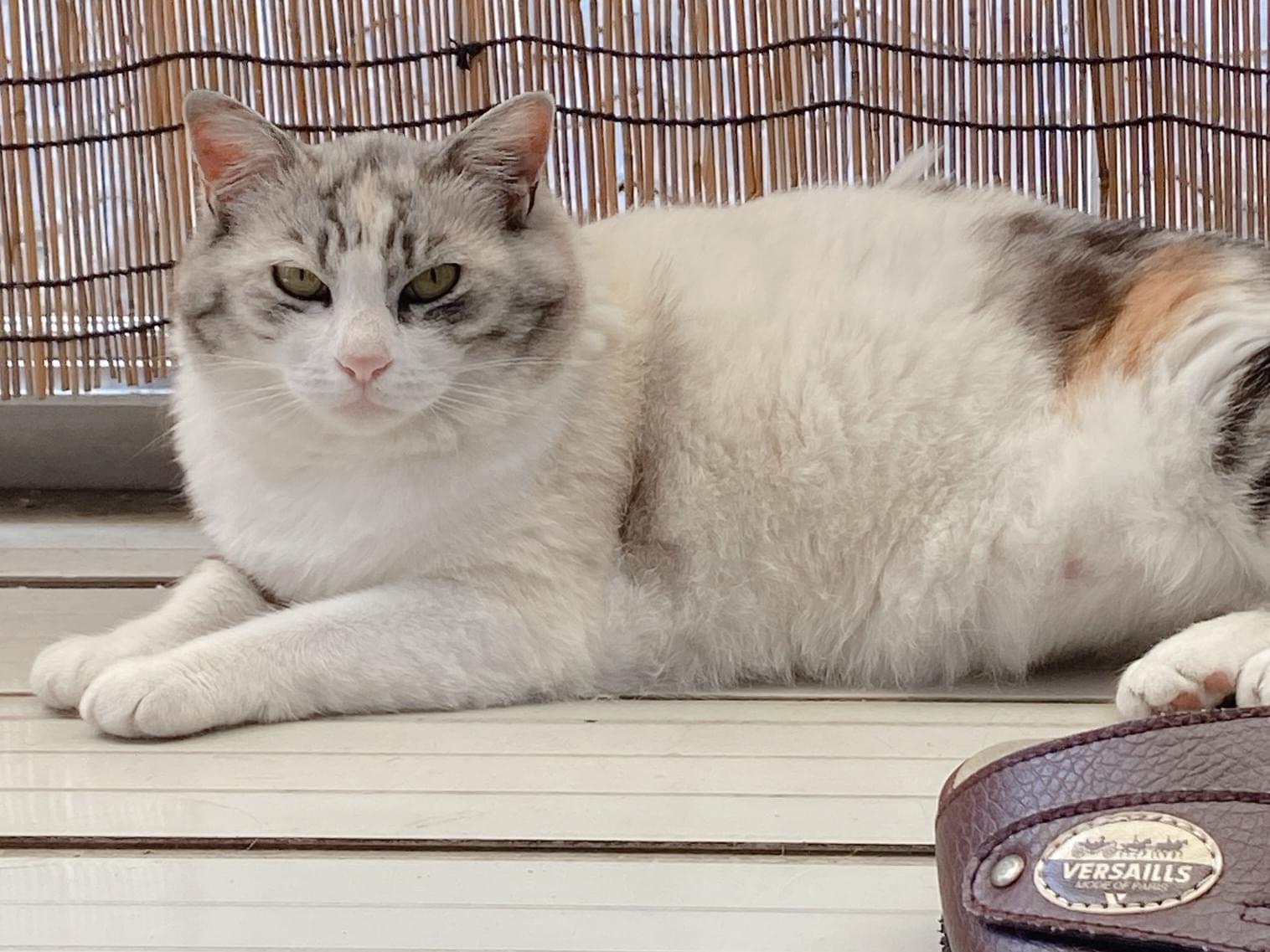 パステル三毛(三毛といっても全体的に薄く背中が三毛色です)不妊手術済みですが耳カットしてません。