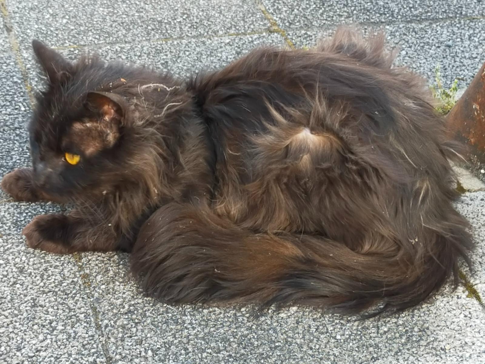 保護前から人慣れしている様子があり、道行く人が頭をなでても平気そうにしていました。