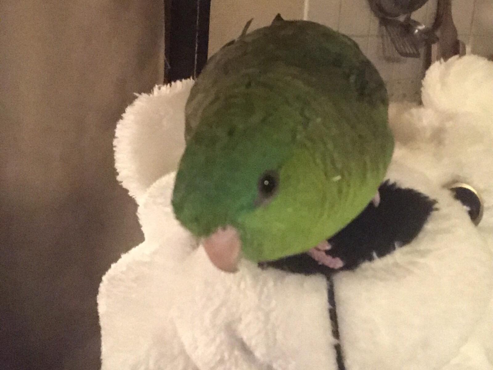 サザナミインコ🦜深い緑色ではねの下にサザナミのような模様です。