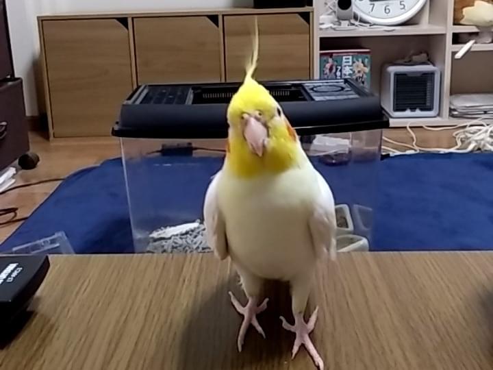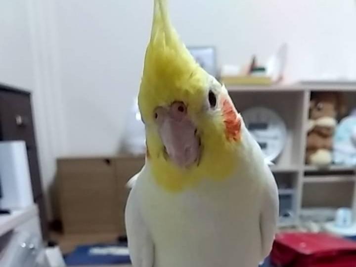 オカメインコの丸ちゃんです。丸ちゃんと自分で言います。ドラえもんのフレーズ🎶とっても大好きドラえもん🎶を口笛で吹きます。顔を撫でられるのが大好きです。