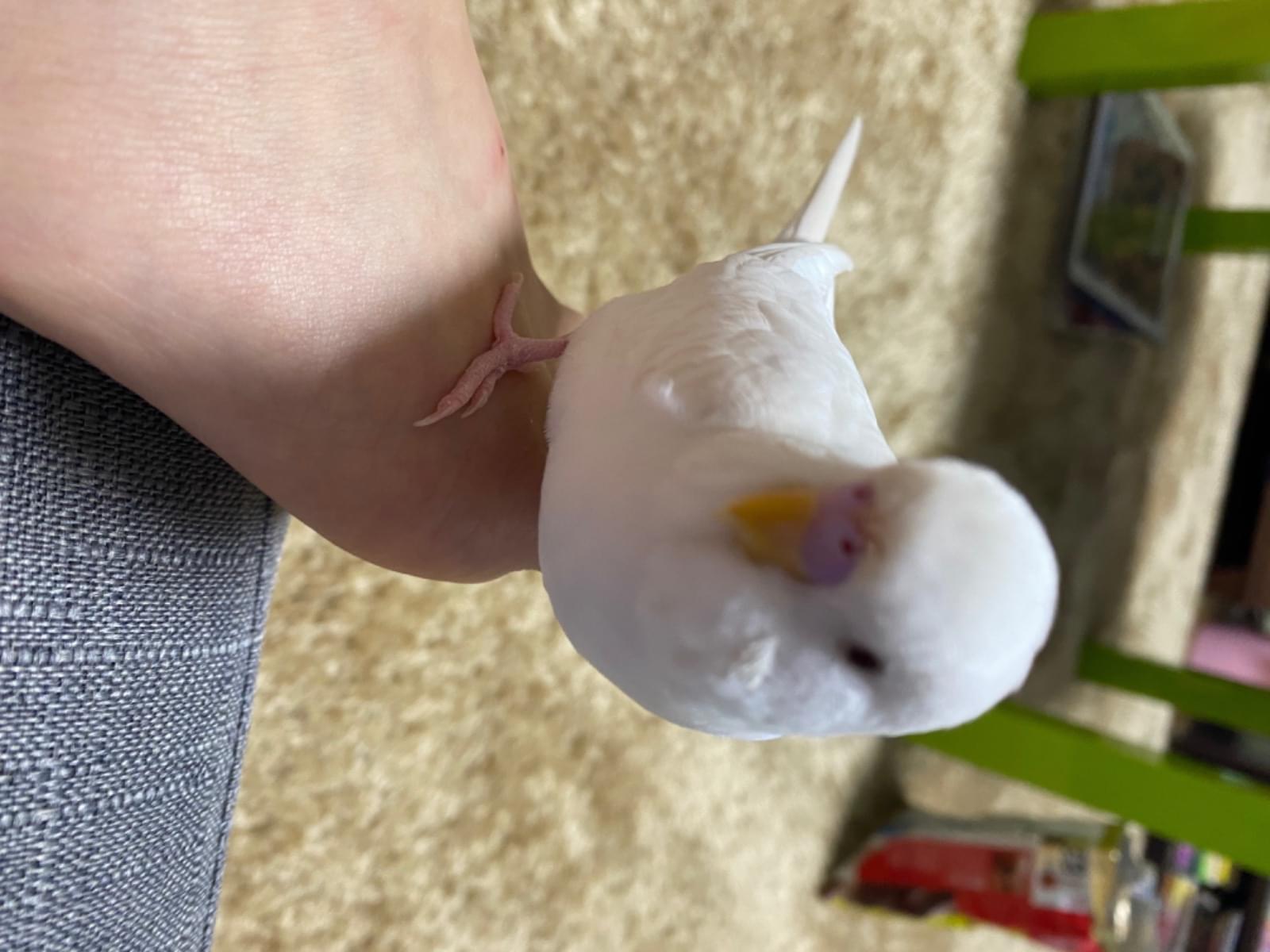 真っ白なセキセイインコで手乗りの人懐っこい子です。